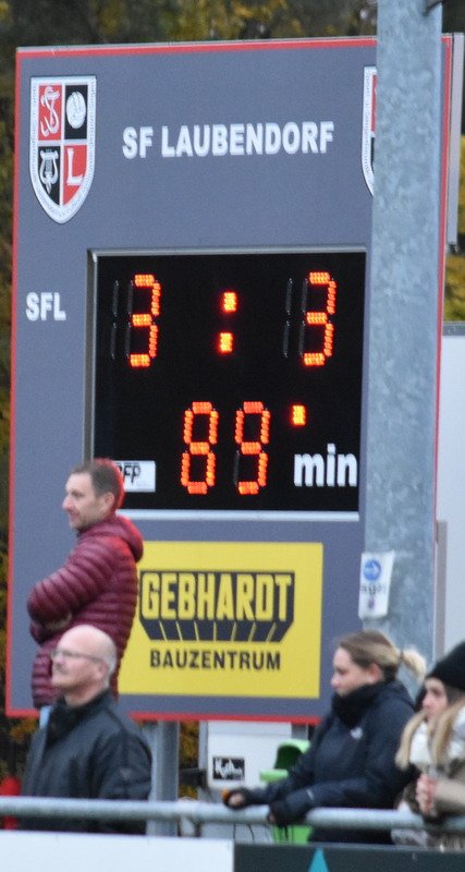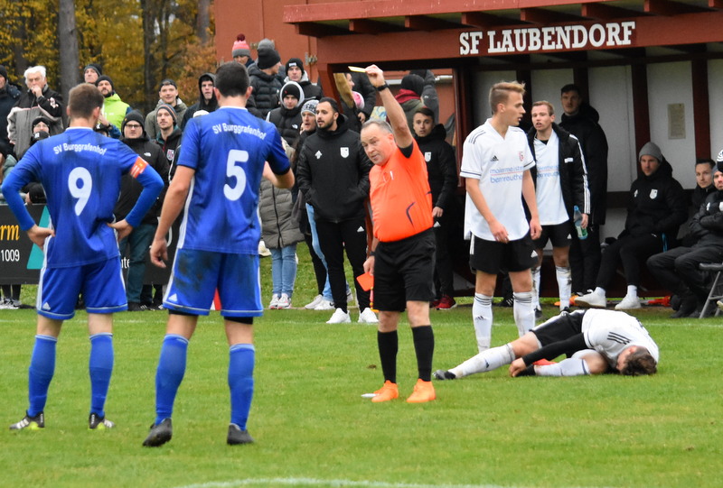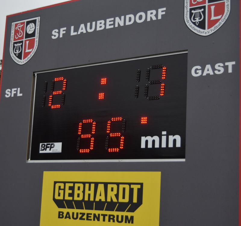 Beide Mannschaften lieferten sich einen guten und fairen Kampf. Man sah sofort, dass beide den Sieg wollten. Den besseren Start hatte zunächst der Gast aus Burggrafenhof, der durch einen direkten Freistoß von Raab mit 1:0 in Führung gehen konnte. Aber der SFL zeigte sich unbeeindruckt und konnte bereits 4 Minuten später durch Knies wieder ausgleichen. Es entstand eine flotte Partie auf Augenhöhe, die zu keinem Zeitpunkt langweilig wurde. In der 44. Minute dann, die Zuschauer hatten sich bereits mit dem Halbzeitstand abgefunden, konnte Stiegler den Ball zur erneuten Führung für die Gäste über die Linie drücken. Nach dem Seitenwechsel wurde die Partie durch einige Spielunterbrechungen verlangsamt, es blieb aber immer spannend. Nach einer guten Stunde zeigte der Unparteiische dann plötzlich auf den Elferpunkt und bot so der Heimelf die Möglichkeit auf den neuerlichen Ausgleich. Torjäger Seiwerth verwandelte sicher und stellte somit erneut das Remis her. Die Partie war zu diesem Zeitpunkt völlig offen und hätte in beide Richtungen gehen können. Aber wieder der SVB jubeln als Schottenhammel das 2:3 erzielte. In folge des erneuten Rückstandes und der verbleibenden Restspieldauer warf die Heimelf nun alles nach vorne. Man kam zu einigen gefährlichen Chancen und erneut Seiwerth, mit Unterstützung des Burggrafenhofer Schlussmannes, konnte abermals ausgleichen. Aber noch war die Partie nicht beendet. Obwohl in Unterzahl, Boss hatte in der 91. Minute Gelb-Rot gesehen wegen Meckerns, drückten die Gäste noch einmal, denn sie wollten sich nicht mit einem Punkt zufriedengeben. Und prompt konnte Schelling in der 93. Minute nach einer schlechten Laubendorfer Abwehr den Ball per Volleyschuss sehenswert im Gehäuse des SFL unterbringen und ermöglichte so seiner Elf den Last-Minute-Sieg.