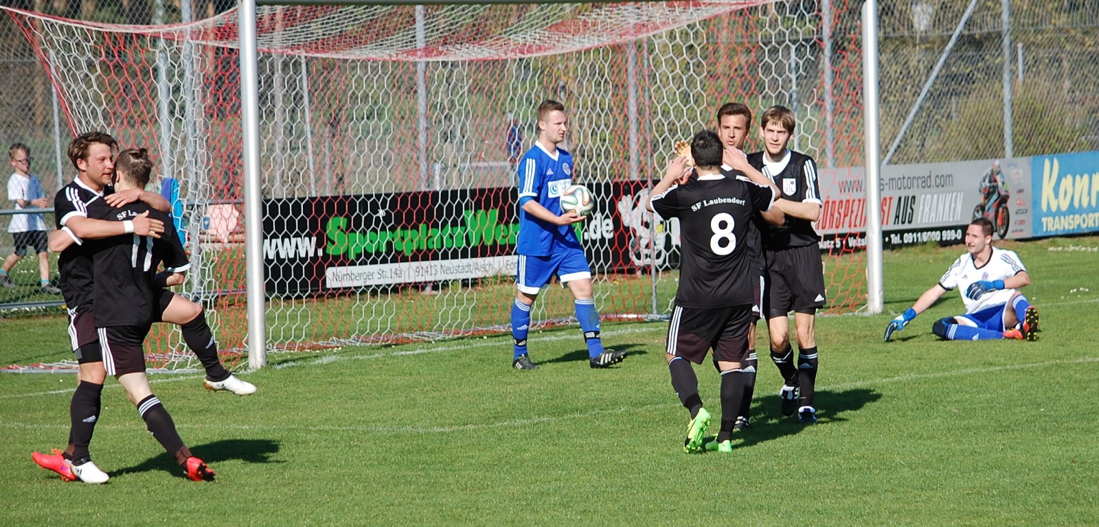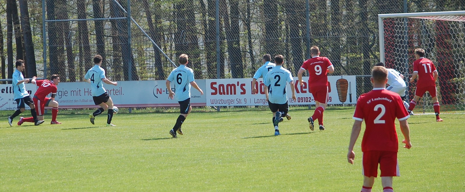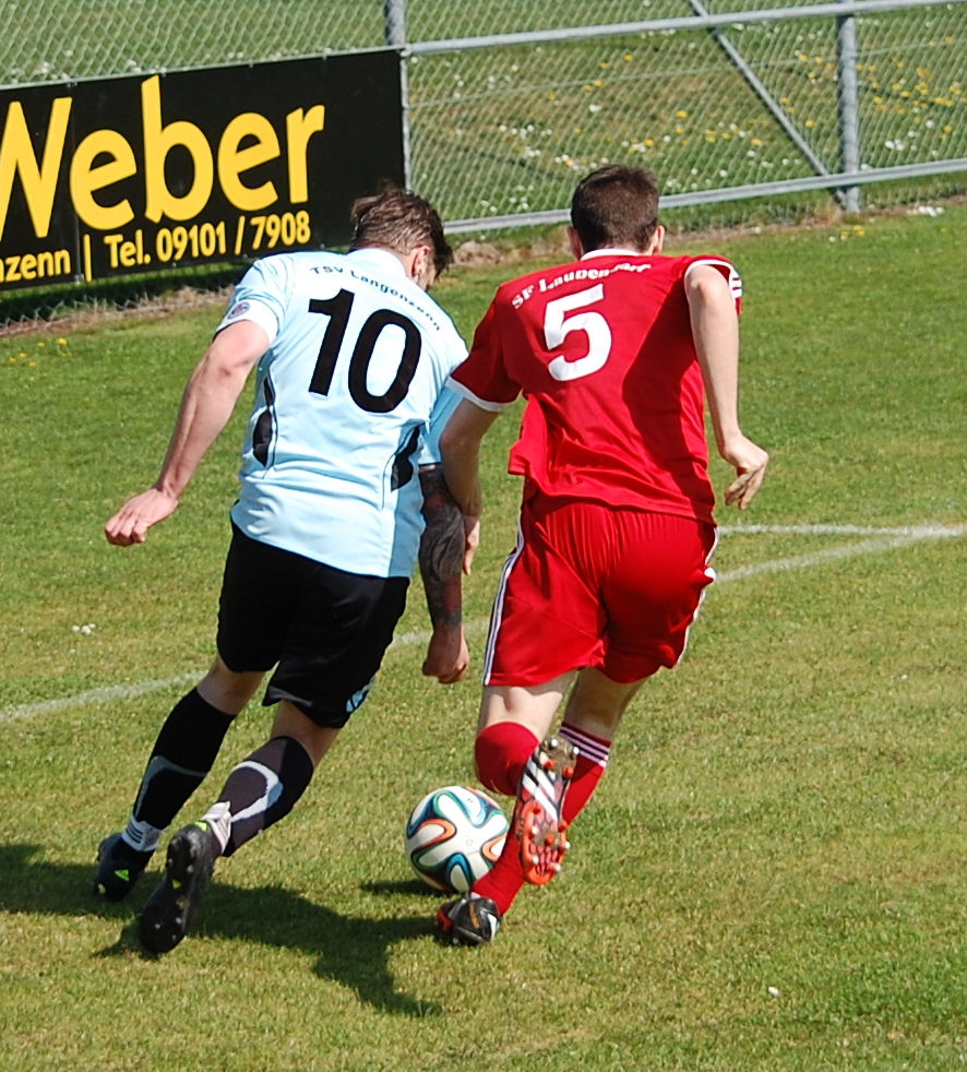 Nachdem beide Mannschaften eine tolle Geste für den Respekt gegenüber Schiedsrichtern gezeigt hatten, ging es mit dem Derby bei schönstem Sonnenschein auch schon los. Rund 270 Zuschauer hatten sich eingefunden um das Spiel zu sehen. Langenzenn hatte den etwas besseren Start und konnte durch einen sehenswerten Freistoß von Felix Bauer in die Gabel mit 1:0 in Führung gehen. Aber Laubendorf steckte nicht auf und kämpfte sich zurück. Ebenfalls mit einem direkten Freistoß gelang Benkert in der 37. Minute der Ausgleich. Nach dem Seitenwechsel wurde die Partie immer mehr wie ein richtiges Derby. Viele kleine Fouls bremsten den Spielfluss. Laubendorf erarbeitete sich langsam ein Übergewicht blieb aber im Abschluss glücklos. So verfehlten Knies und Benkert das Gehäuse nur knapp. In der Schlussphase wurde es dann noch einmal kurios. In der 84. Minute fand Cavallos Flanke Benkert, welcher den Torwart umkurven wollte, aber durch ein Foul gebremst wurde. Den fälligen Strafstoß verwandelte Benkert selbst zur 2:1 Heimführung. Nur 4 Minuten später wollte der Langenzenner Feldspieler der für den vom Platz geflogenen Schlussmann das Gehäuse hütete einen langen Ball der Laubendorfer klären, traf dabei aber seinen Mitspieler, von dessen Gesicht der Ball in den Lauf von Benkert prallte. Dieser schob uneigennützig quer und Eichinger erzielte den 3:1 Endstand.