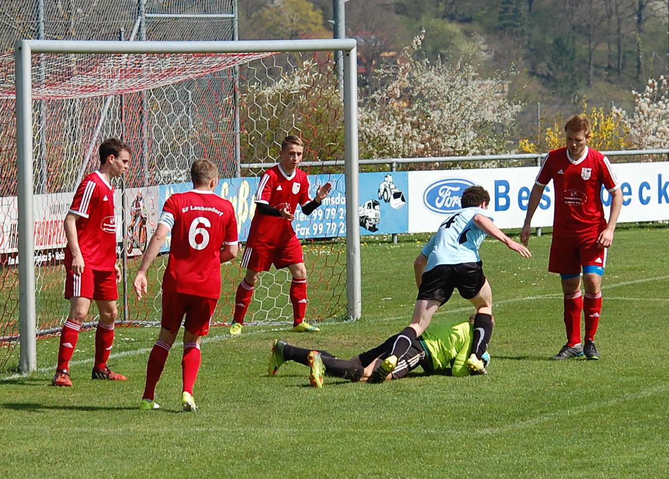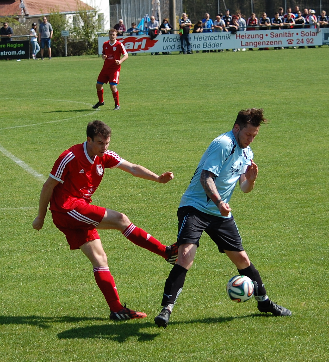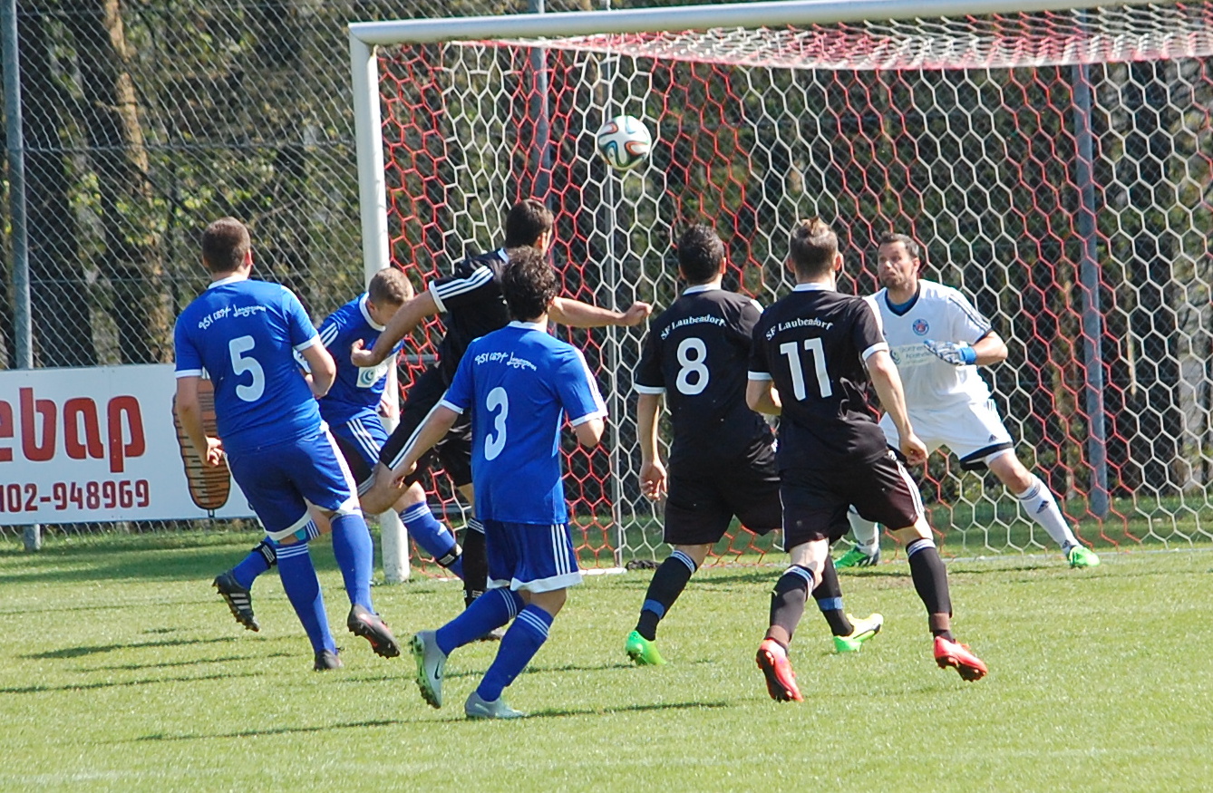 Nachdem beide Mannschaften eine tolle Geste für den Respekt gegenüber Schiedsrichtern gezeigt hatten, ging es mit dem Derby bei schönstem Sonnenschein auch schon los. Rund 270 Zuschauer hatten sich eingefunden um das Spiel zu sehen. Langenzenn hatte den etwas besseren Start und konnte durch einen sehenswerten Freistoß von Felix Bauer in die Gabel mit 1:0 in Führung gehen. Aber Laubendorf steckte nicht auf und kämpfte sich zurück. Ebenfalls mit einem direkten Freistoß gelang Benkert in der 37. Minute der Ausgleich. Nach dem Seitenwechsel wurde die Partie immer mehr wie ein richtiges Derby. Viele kleine Fouls bremsten den Spielfluss. Laubendorf erarbeitete sich langsam ein Übergewicht blieb aber im Abschluss glücklos. So verfehlten Knies und Benkert das Gehäuse nur knapp. In der Schlussphase wurde es dann noch einmal kurios. In der 84. Minute fand Cavallos Flanke Benkert, welcher den Torwart umkurven wollte, aber durch ein Foul gebremst wurde. Den fälligen Strafstoß verwandelte Benkert selbst zur 2:1 Heimführung. Nur 4 Minuten später wollte der Langenzenner Feldspieler der für den vom Platz geflogenen Schlussmann das Gehäuse hütete einen langen Ball der Laubendorfer klären, traf dabei aber seinen Mitspieler, von dessen Gesicht der Ball in den Lauf von Benkert prallte. Dieser schob uneigennützig quer und Eichinger erzielte den 3:1 Endstand.