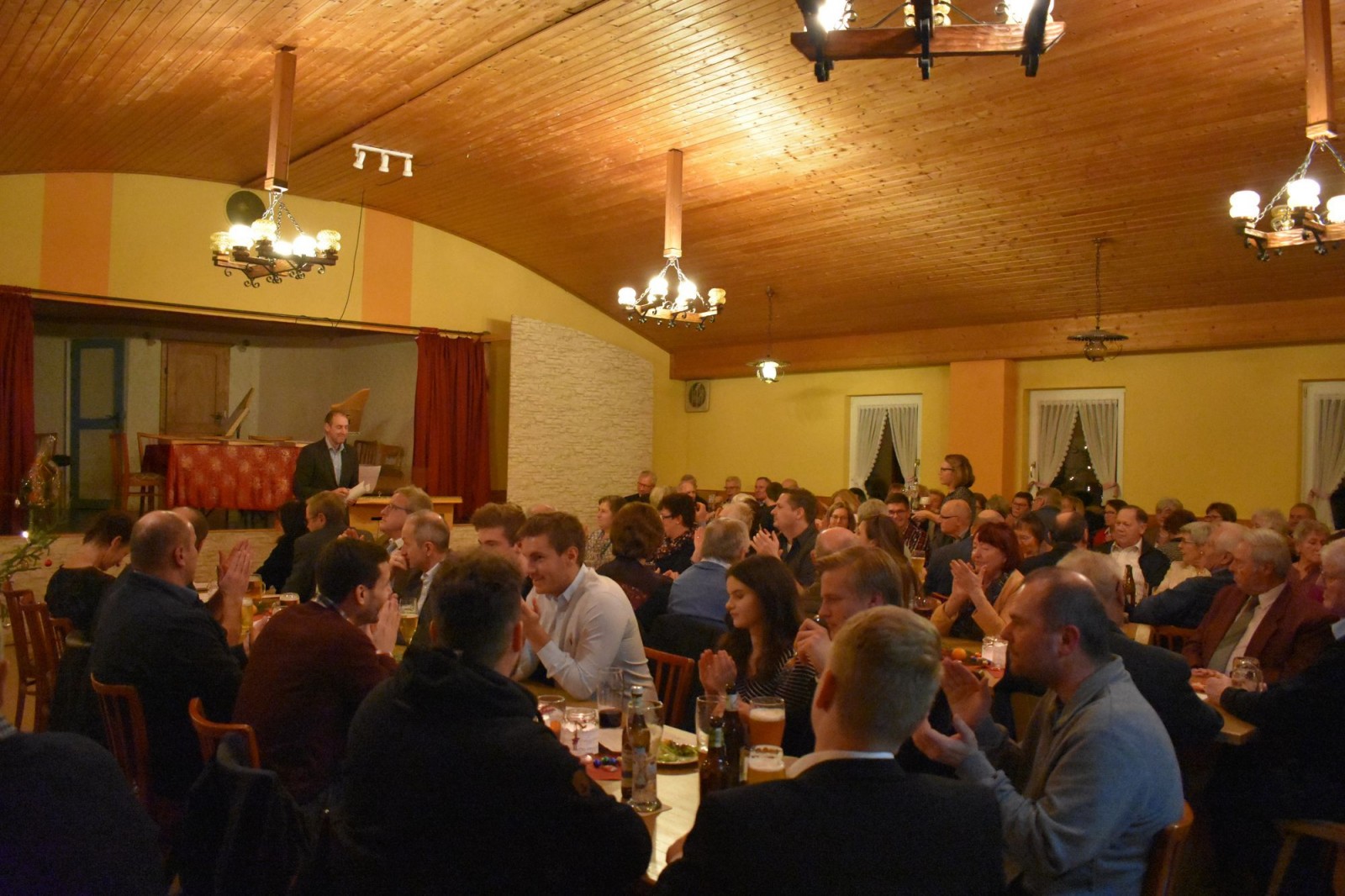 Christian Gall blickte auf ein ereignisreiches Jahr zurück und teilte mit den Gästen seine Gedanken über die Bedeutung der „Sternstunde“ zur Weihnachstzeit. Klaus Roscher für die Stadt Langenzenn sorgte mit einer lustigen Rede für Erheiterung im Saal. Er lobte die langjährige Jugendarbeit und den hohen Einsatz der Ehrenamtlichen im Verein. Außerdem erklärte er warum seine Kinder damals keine Fußballer beim SFL sondern Musiker geworden sind. Pfarrerin Heilmeier fand die richtigen Worte und schickte Weihnachtsgrüße an alle Mitglieder und Freunde des SFL. Katja Krause, Abteilungsleiterin der Sänger, trug eine besinnliche Weihnachtsgeschichte vor.