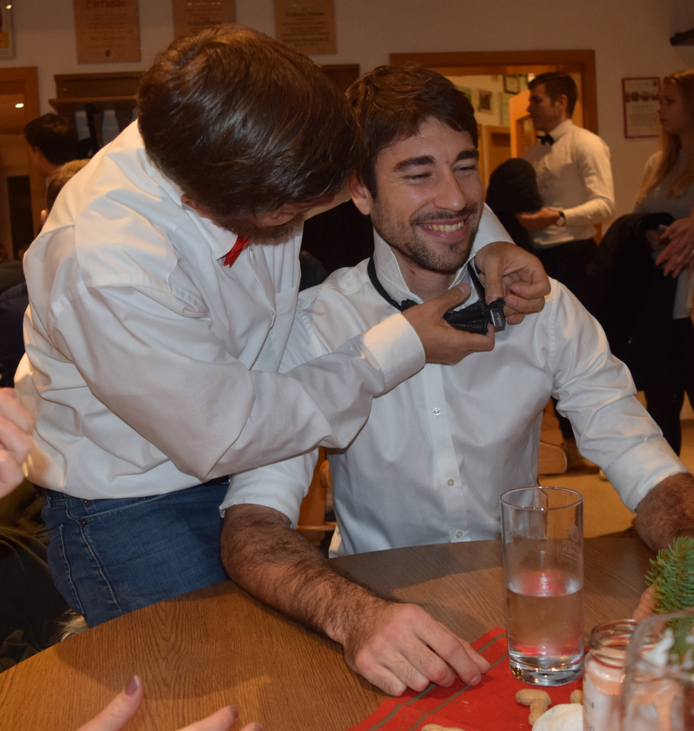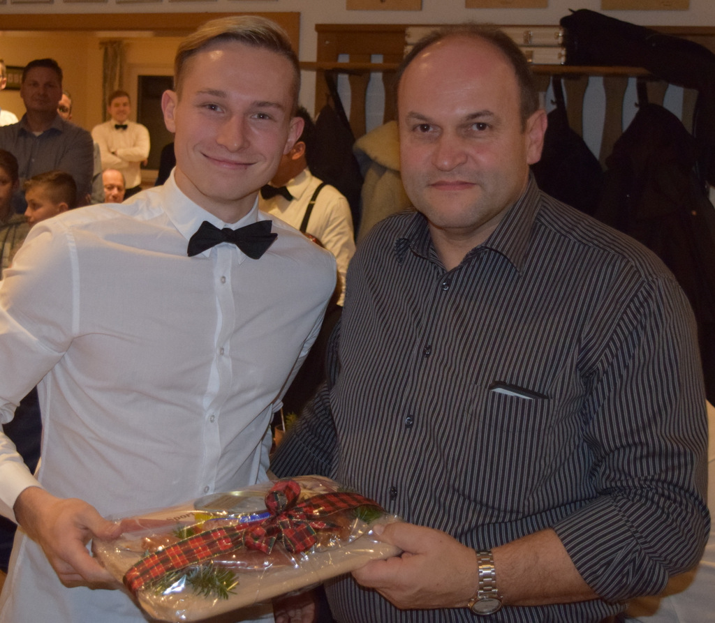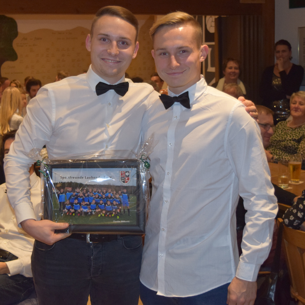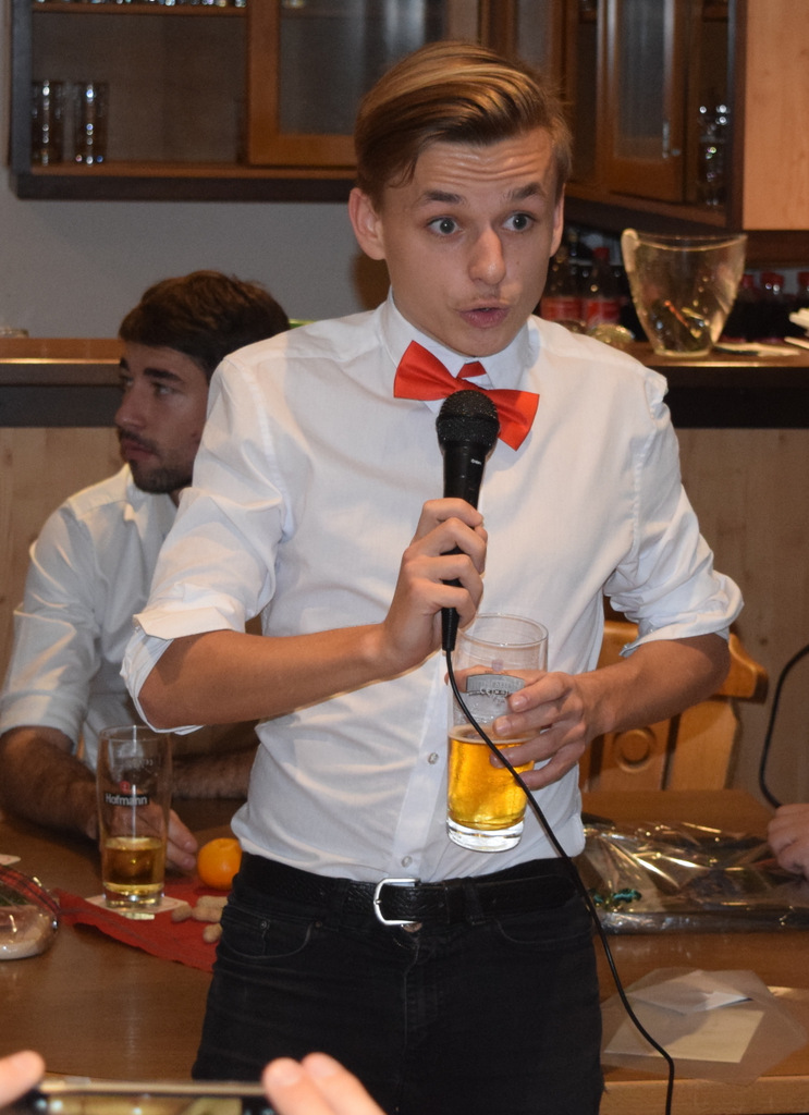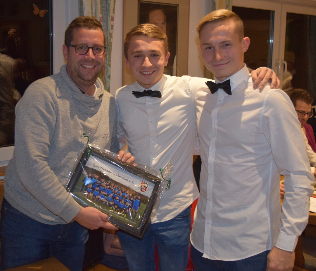 Die Ehrungen begannen mit Geschenken an die beiden Trainer und setzen sich dann über die Spielleiter, Platzwarte bis zu den Sponsoren fort. Mit Spannung wurde die schon legendäre Ansprache des jüngsten Spielers erwartet. In diesem Jahr war Kevin Heubeck der Auserkorene, er machte sein Sache gut und wurde mit viel Beifall entlassen. Zum Abschluss des offiziellen Teiles der Weihnachtsfeier hatte Stephan Schmidt einen Sketch vorbereitet, der alle Besucher ins Jahr 2077 entführte. Dort trafen sich immer noch mittwochs beim Stammtisch der alten Herren in die Jahre gekommene bärtige Altinternationale der Sportfreunde. Sie blickten voller Stolz auf das Jahr 2018 zurück, wo die Meisterschaft und der Aufstieg in die Kreisliga so frühzeitig gefeiert werden konnte, dass die AH zum letzten Punktspiel nach Wilhermsdorf geschickt wurde, während sie, die Spieler der Ersten, bereits auf „Malle“ gefeiert haben. Diesem Wunsch ist nichts hinzuzufügen, nun muss er nur noch Wirklichkeit werden. Mit einem gemeinsamen Foto aller Spieler wurde der offizielle Teil der Weihnachtsfeier abgeschlossen. Danach ging die Feier bei bestem Service noch lange weiter.