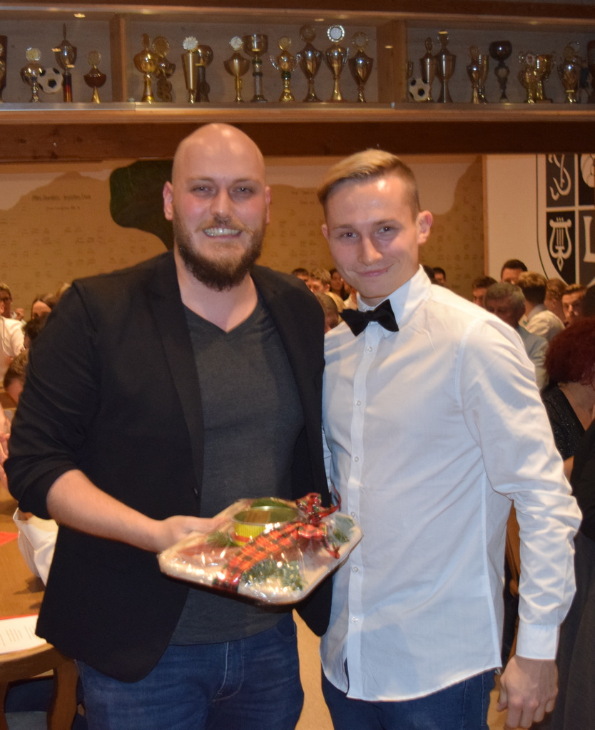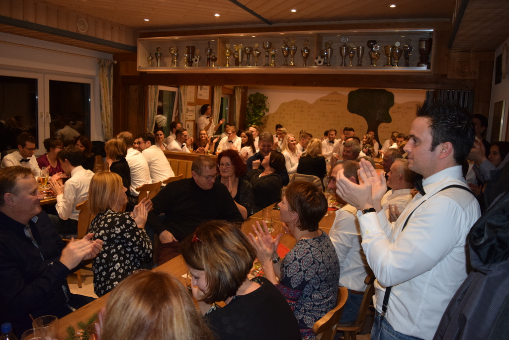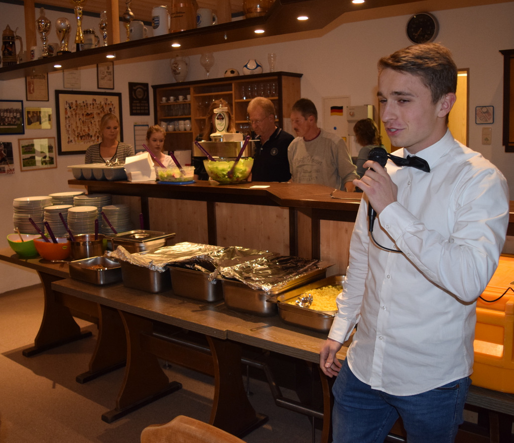 Dazu alle die sich im Laufe des Jahres 2017 um die beiden Mannschaften verdient gemacht hatten. Also von den Platzwarten bis zu den Spielleitern und von den Trainern bis zu den Servicekräften im Sportheim und rund um das Sportgeschehen. Es war deshalb auch wenig verwunderlich, dass das Sportheim samt Nebenzimmer gut geführt war, als Jan Körber in seiner Funktion als Moderator alle ganz herzlich begrüßt hat. Er gab zunächst das Essen frei, was zu langen Schlangen und entsprechenden Wartezeiten gefüllt hat, ehe jeder das Wunschessen seiner Wahl in absolut guter Qualität aus dem Hause Eberlein genießen konnte.