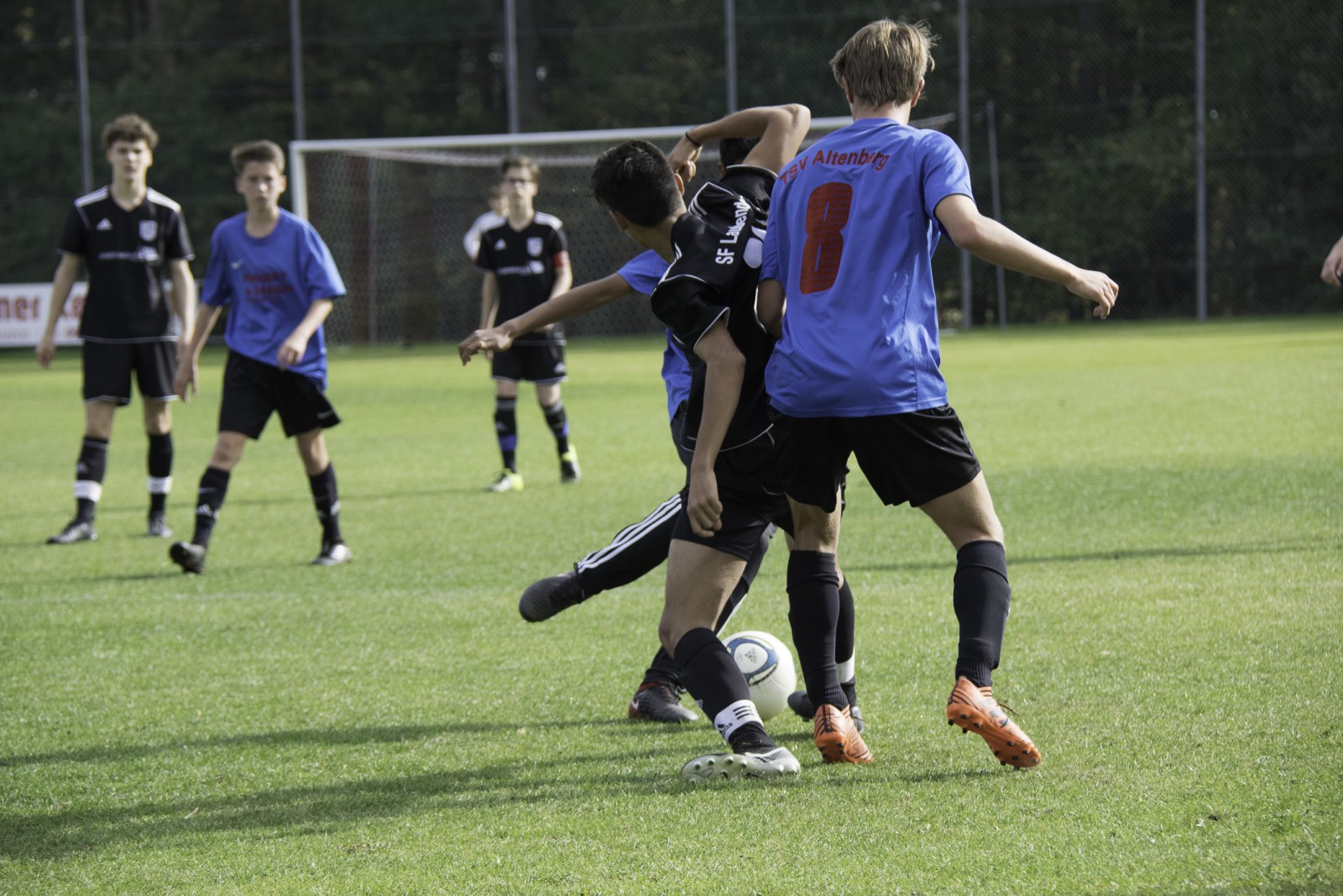 Nach der Pause kamen wir leider nicht so in die Partie wie wir uns das vorgenommen hatten und schon nach 3 Minuten viel dann das 2:2. Beide Mannschaften versuchten nun Ihr Spiel dem Gegner aufzuzwingen und wir konnten uns leider auch nicht wirklich so befreien wie wir es in der ersten Hälfte es teilweise perfekt geschafft hatten. Nach so knapp 10 Minuten hatten wir dann durch einen tollen Schuß von Lukas (der Ball ging an die Latte, leider konnten wir den Abpraller nicht verwerten) eine riesen Gelegenheit zum 3:2. Kurze Zeit später ging Isi auf der linken Seite auf und davon und hatte nur den Torwart vor sich. Beide bewegten sich aber zu langsam zum Ball und es gab einen unglücklichen Zusammenprall bei dem sich der Torwart der Altenberger einen Cut am Kopf zuzog. Wir wünschen auf diesem Weg gute Besserung.