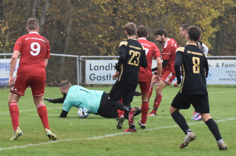 In den ersten Minuten war die Partie noch recht hektisch ehe sich beide Teams gefunden hatten. Die 1. Mannschaft versuchte sofort den Gegner hoch anzulaufen und unter Druck zu setzen. Prompt konnte Wassner einen verunglückten Abstoß des gegnerischen Schlussmannes abfangen und direkt abziehen. Sein wuchtiger Versuch schlug unter der Latte ein und bedeutete die frühe SFL Führung. Auch im weiteren Verlauf lag das Chancenübergewicht auf Seiten der Laubendorfer. Immer wieder konnte man sich vors Tor spielen und kam zu Abschlüssen. In der 20. Minute konnte sich Bernreuther im Strafraum gegen seine Gegenspieler durchsetzen und nagelte den Ball ins lange Eck zum 2:0. Die Gäste konnten in der ersten Hälfte einen gefährlichen Abschluss verbuchen, doch konnte der Ball durch Koch kurz vor der Linie geblockt werden. Nach dem Seitenwechsel erhöhten die Gäste plötzlich den Druck und drängten den SFL hinten rein. Auch die Zahl und Qualität ihrer Chancen erhöhte sich, aber Grohganz war hellwach und konnte seinen Kasten sauber halten. Nach dieser Drangphase wurde es ein offenes Spiel mit Chancen auf beiden Seiten. In der 70. Minute zeigte der Unparteiische nach einem Handspiel im Laubendorfer Strafraum auf den Punkt. Strauß verwandelte sicher und stellte auf 2:1. Nun keimte in den Gästen noch einmal Hoffnung auf, doch diese wurde nur wenige Minuten später zunichte gemacht als die Laubendorfer Offensive sich mustergültig über rechts durchspielte und Hertlein den Ball querlegte auf Wassner der zum 3:1 traf und damit die Entscheidung herbeiführte. Die Gäste hatten danach keine Tormöglichkeit mehr. Gattinger hätte auf Seiten des SFL in der Schlussminute noch auf 4:1 stellen können, scheiterte aber am Gästekeeper.