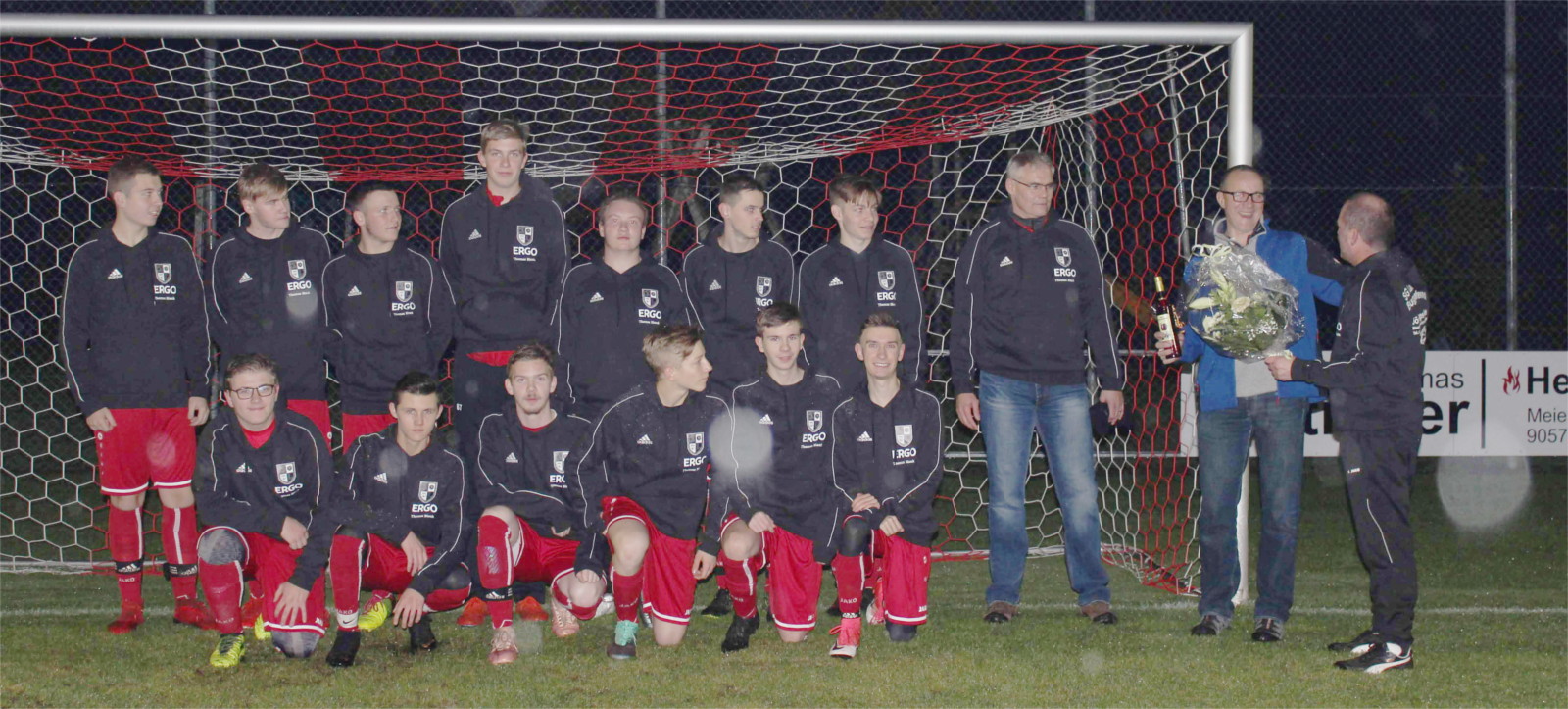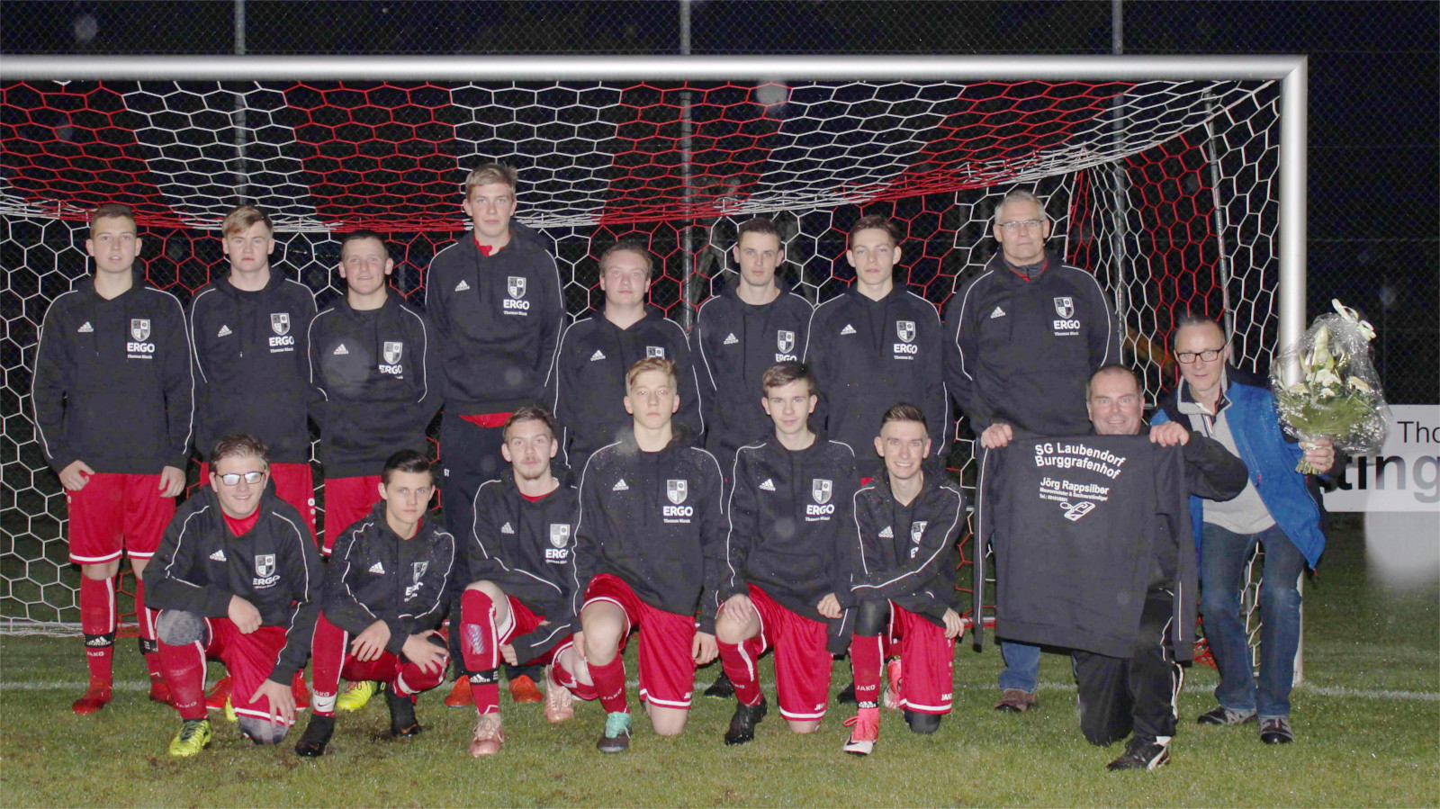 Zum Freitagsspiel der A-Jugend gegen den SV Poppenreuth-Fürth konnten wir der Mannschaft einen Satz Hoodies präsentieren, die von der Firma Maurermeister Jörg Rappsilber gesponsert wurden. Leider kam der offizielle Teil etwas zu kurz, da durch einen Flutlichtausfall noch die Plätze getauscht werden mussten. Die Mannschaft ist von den hochwertigen Hoodies begeistert! So wurden Jörg Rappsilber als kleines Dankeschön unsere SFL Stamperl mit Füllstoff und ein grün-weiser Kleeblatt Blumenstrauß für seine Frau Angelika überreicht, nachdem auch diese Spende wieder nicht in grün geliefert wurde! Die Initiative kam von Uwe Werner, der die Hoodies zusammen mit einem Trikotsatz in der Vorsaison über die ERGO Versicherungsagentur Burgfarrnbach, Thomas Blank, beschafft hatte.