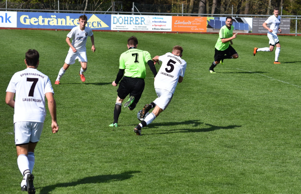 Die Heimmannschaft riss das Spielgeschehen sofort nach dem Anpfiff an sich und konnte bereits nach knapp 10 Minuten durch Stadlmann in Führung gehen der eine Flanke ins Tor nickte. Auch im weiteren Verlauf der ersten Hälfte hatte die Heimelf mehr Spielanteile, auch weil Laubendorf nicht an die gute Leistung aus der Vorwoche anknüpfen kann. Petersaurach schaffte es allerdings nicht seine Spielanteile in Tore umzumünzen, wodurch es zum Pausenpfiff weiterhin 1:0 für die Heimelf stand. Nach dem Seitenwechsel ein ähnliches Bild. Proske vergab eine Möglichkeit die Führung auszubauen. Auf der anderen Seite hatte Sand die Chance auf den Ausgleich, aber er konnte den Ball freistehend nicht genau platzieren um den Petersauracher Schlussmann zu überwinden. In der Schlussphase spielte die Heimelf clever die Zeit runter und ließ den Laubendorfern keine Gelegenheiten mehr sich zwingende Torchancen zu erspielen und somit den Ausgleichstreffer zu erzielen. So blieb es beim 1:0 für Petersaurach.