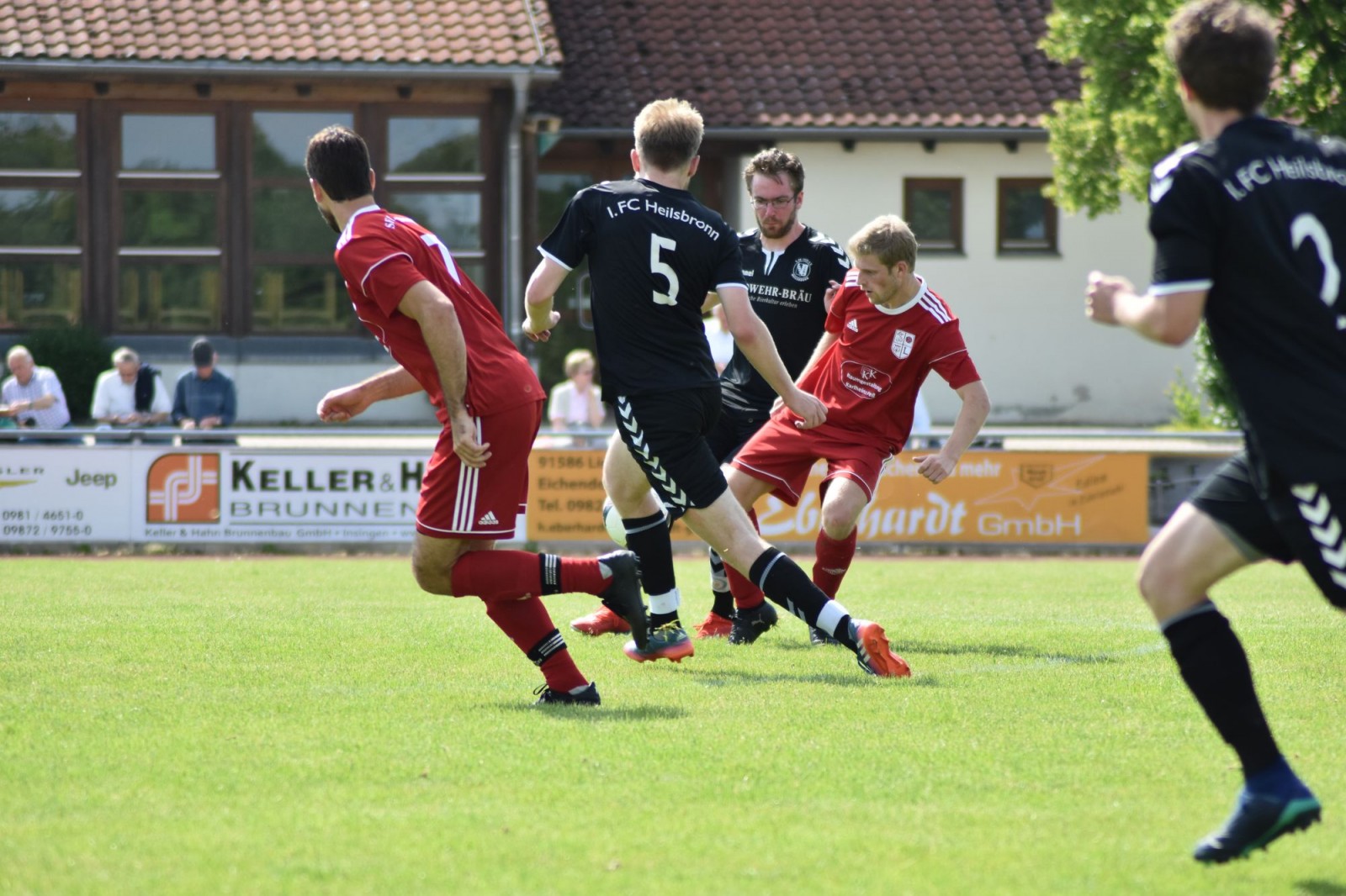 In den Anfangsminuten ereignete sich zunächst nichts Spektakuläres. Erst nach 20 Minuten wurde es gefährlich vor dem Heilsbronner Tor. Horneber konnte nur durch ein Foul gestoppt werden und Wassner verwandelte souverän. Danach kam der SFL besser ins Spiel und zeigte immer wieder schöne Spielzüge über die Außenbahnen. Mit dem Pausenpfiff wurde abermals Horneber, diesmal von Meier, in Szene gesetzt und konnte zur 2:0 Gästeführung für die Laubendorfer einschieben. Nach der Pause ging es rasant weiter. Zunächst wurde in der 50. Minute ein Abschluss von Knies noch auf der Linie geblockt, ehe er in der 58. nur noch per Foul gestoppt werden konnte. Erneut trat Wassner zum Strafstoß an, allerdings hatte dieses Mal das bessere Ende der Heilsbronner Schlussmann für sich, der den Ball parieren konnte. In der 65. konnte sich dann auch Torjäger Knies in die Statistik eintragen. Er erhöhte auf 3:0 aus Laubendorfer Sicht. Das Spiel schien entschieden aber plötzlich drehte Heilsbronn auf. Zunächst konnte Laubendorfs Schlussmann noch einiges verhindern, beziehungsweise musste zweimal das Aluminium für Laubendorf retten, aber in der 76. Minute dann das 1:3 von Burger. Danach warf Heilsbronn noch einmal alles nach vorne. Allerdings reichte es gegen 10 Laubendorfer – Wassner hatte in der 90. Minute Rot gesehen – nur noch zum 2:3 Anschlusstreffer durch Kupfer (90.+2).