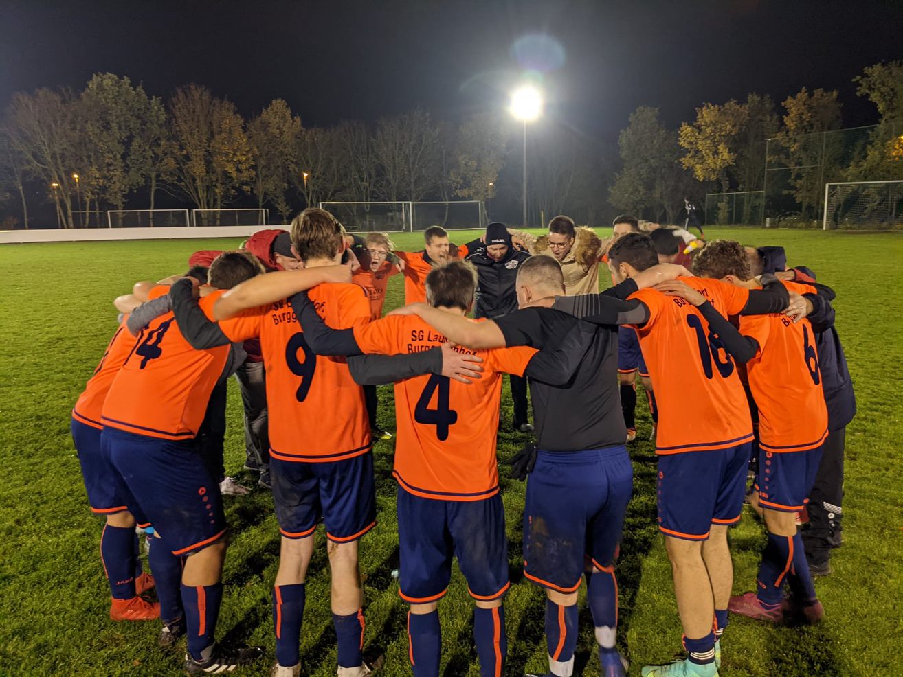 Die Freude war riesig und im Kreis wurde die Meisterschaft und der Aufstieg in die Kreisliga lautstark zum Ausdruck gebracht. Danach gab es die obligatorischen Meisterfotos und man machte sich gemeinsam auf den Weg nach Laubendorf in den Jugendraum. Die Heizung wurde schon nachmittags aufgedreht und verschiedene Getränke kaltgestellt, in der Hoffnung, dass unser Ziel erreicht wird. Mit Pizza wurde feucht fröhlich unser Erfolg gefeiert.