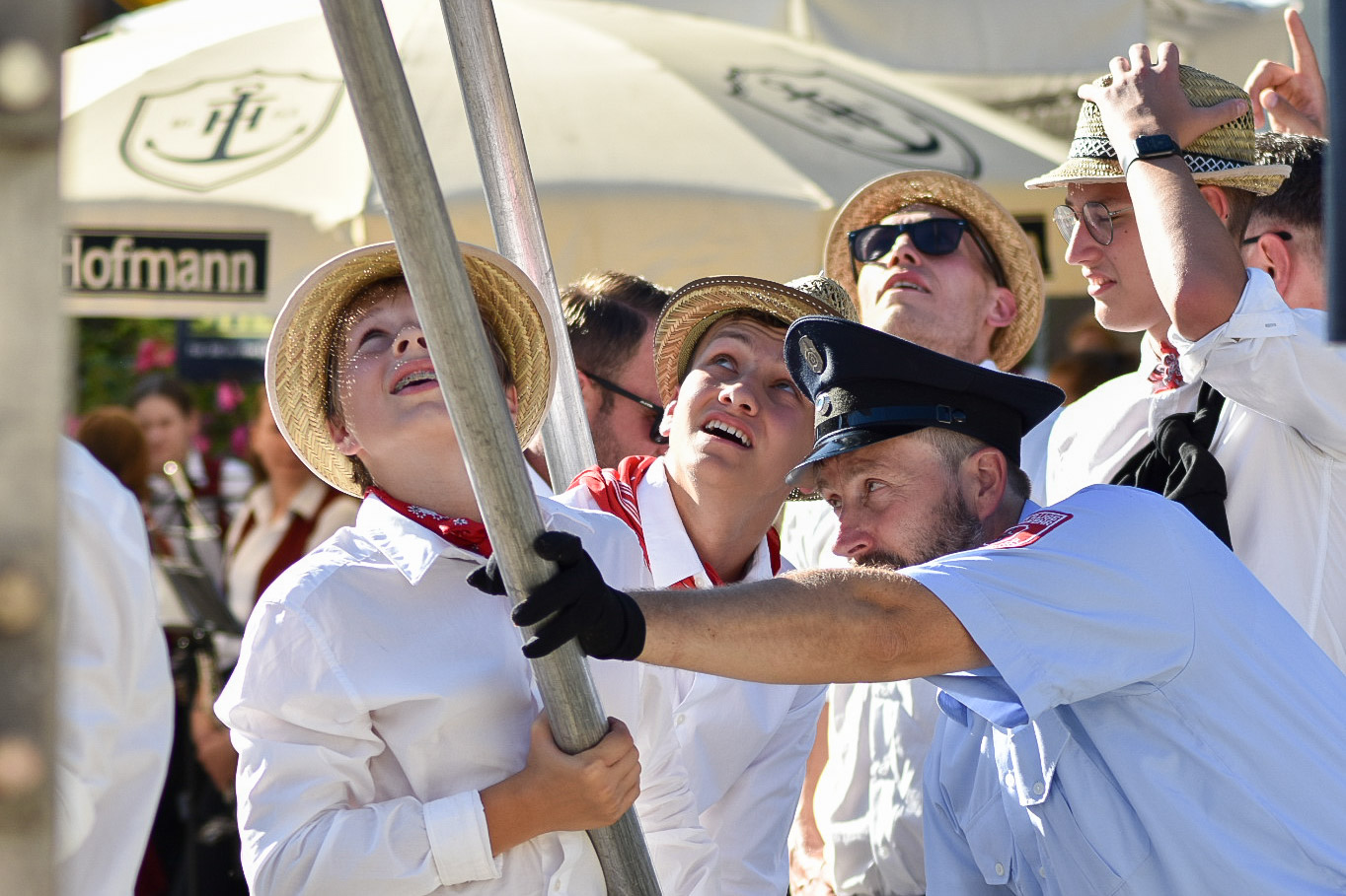 Das Wetter am Samstag meinte es besonders gut mit uns. Bei strahlendem Sonnenschein wurde der Kärwabaum aufgestellt, begleitet von den Ortsburschen-Spielen, die für viel Gelächter und Wettkampfgeist sorgten. Am Abend füllte sich der Saal im Gasthaus Rotes Ross langsam, um die großartige Live-Musik zu feiern, während viele noch das tolle Wetter am Dorfplatz genossen. Der gut besuchte Abend war ein wahrer Genuss für die Sinne.
