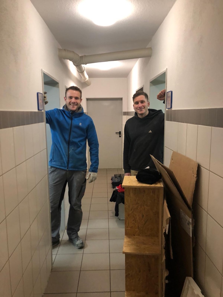 Mitte des Jahres 2019 hatte sich die 1.- und 2.Mannschaft vorgenommen die Heimkabine zu erweitern und komplett zu renovieren. Der grobe Plan stand schnell und aus 2 kleinen Kabinen sollte eine große Heimkabine gemacht werden. Außerdem gab es Bedarf für einen besser organisierten Lagerraum. In kürzester Zeit wurde von einem Team ein kompletter Entwurf und Kostenvoranschlag ausgearbeitet, der dann auch unter Zustimmung aller Abteilungen auf der Vorstandsitzung genehmigt wurde.