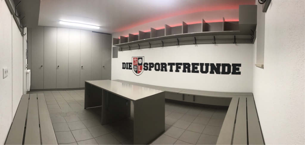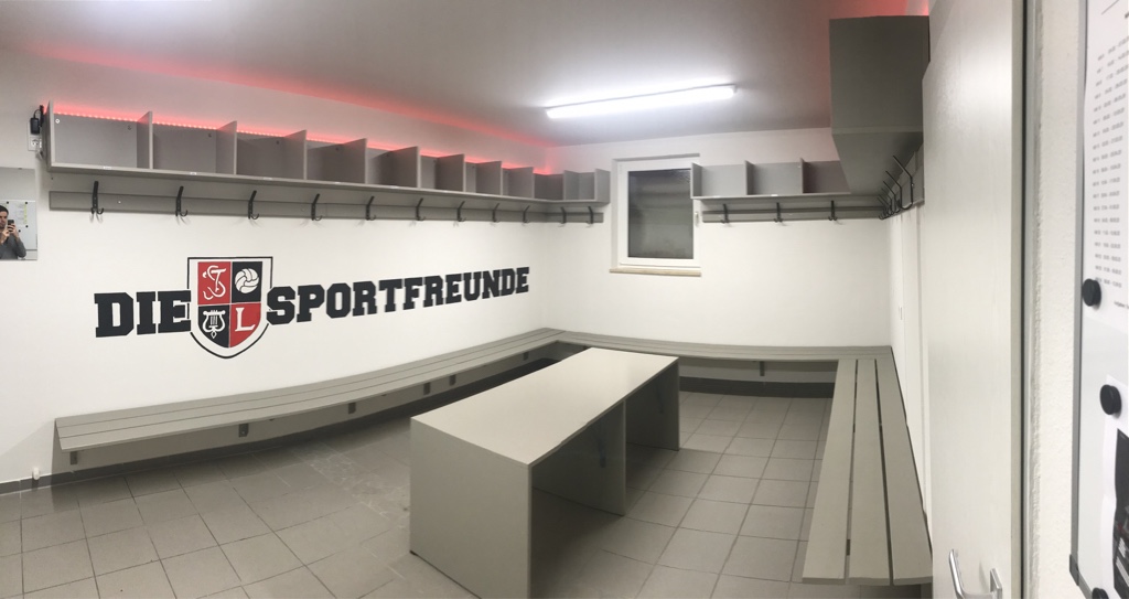 Den Laubendorfer Mannschaften steht nun eine neue Heimkabine zur Verfügung.  An der Wand wurde der Schriftzug „Die Sportfreunde“ angebracht. Als Highlight wurde eine LED Beleuchtung installiert. Unser neues sportliches Zuhause hätten wir schon sehr gerne in diesen Tagen genutzt.