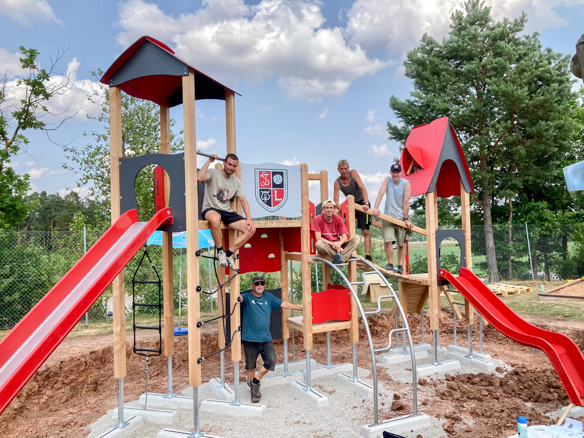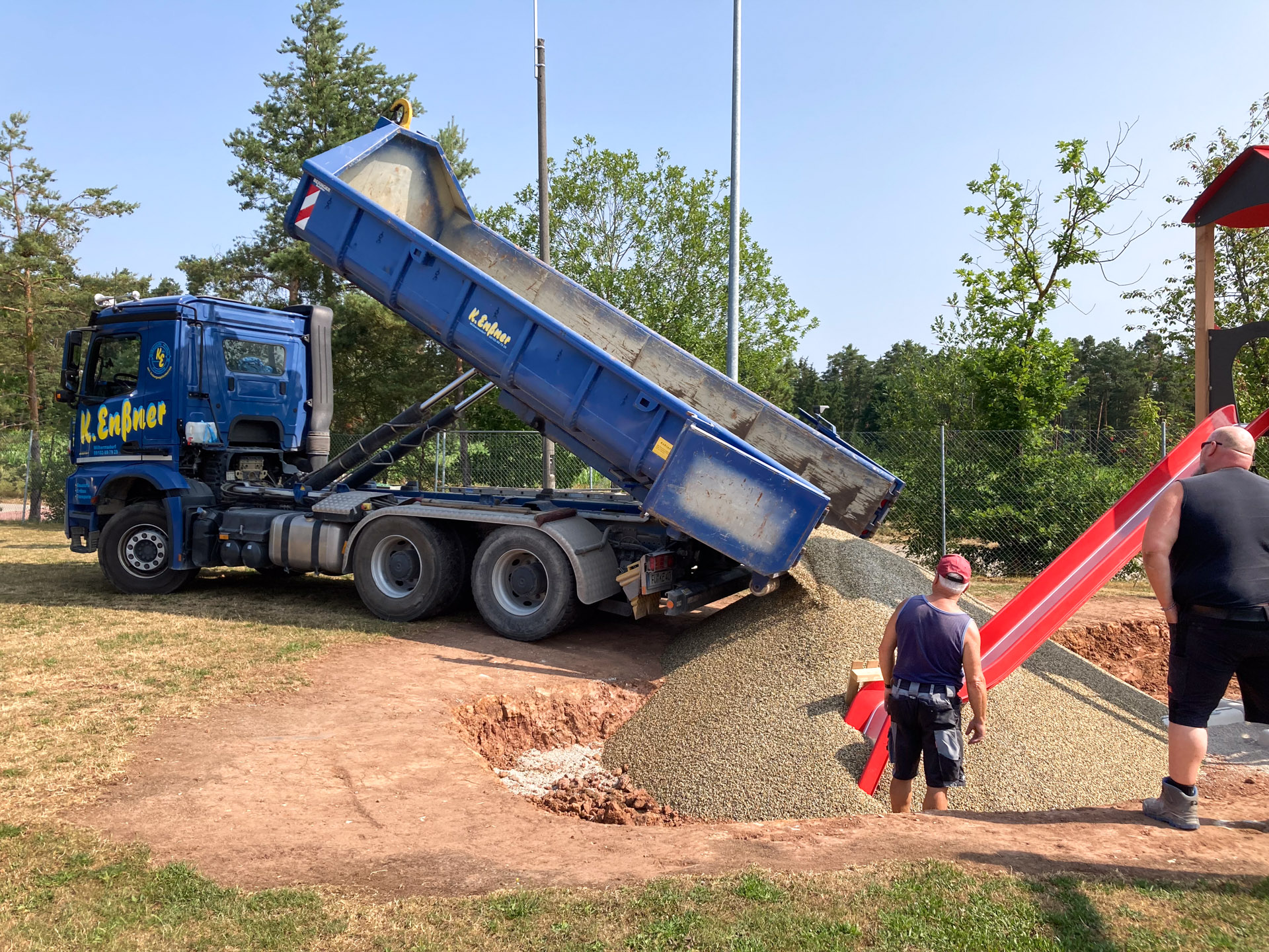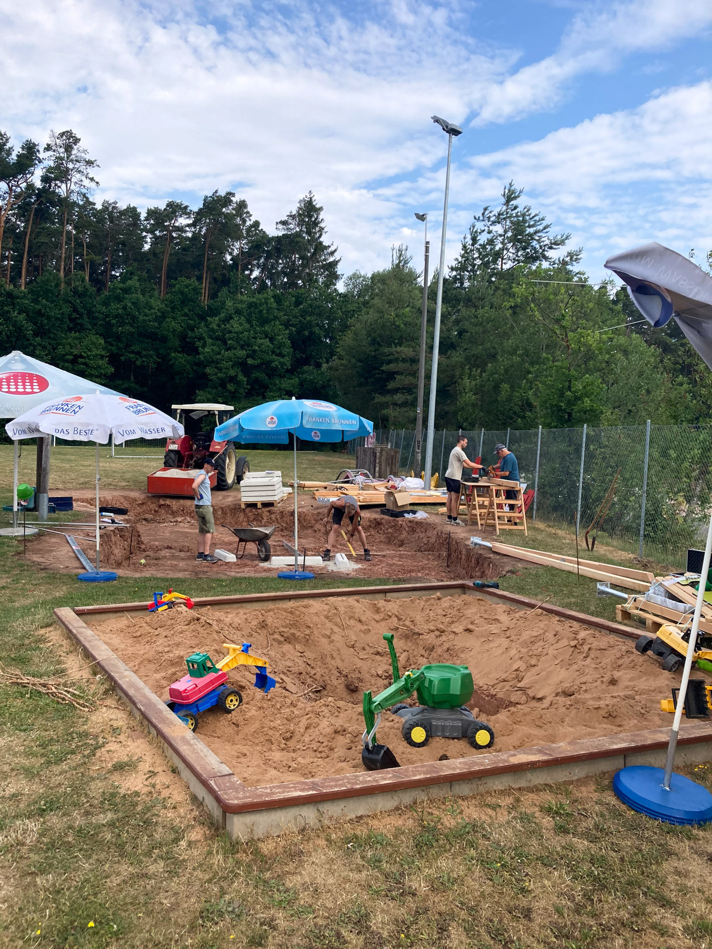 Da stets zahlreiche Familien mit Kindern auf dem Sportplatz unterwegs sind, ist ein spielerisches Angebot natürlich sehr wertvoll und findet schnell viele begeisterte Kinderaugen. Im Spätsommer 2023 war es nun endlich soweit. An nur 2 Tagen wurde aus einer Wiese ein komplett neues Spielgerät mit Kiesbett und die fleißigen Helfer konnten sich über das gelungene Werk freuen.