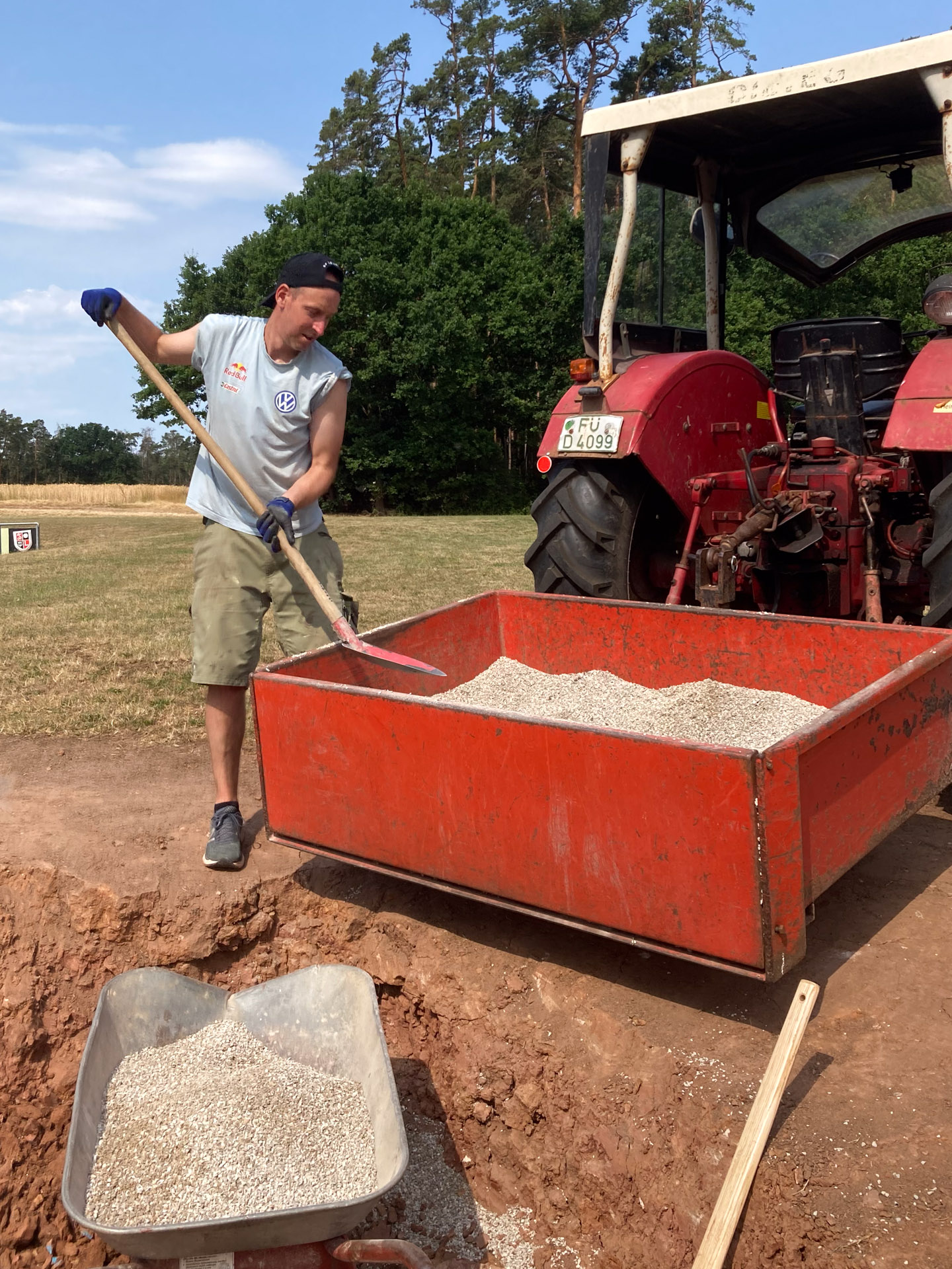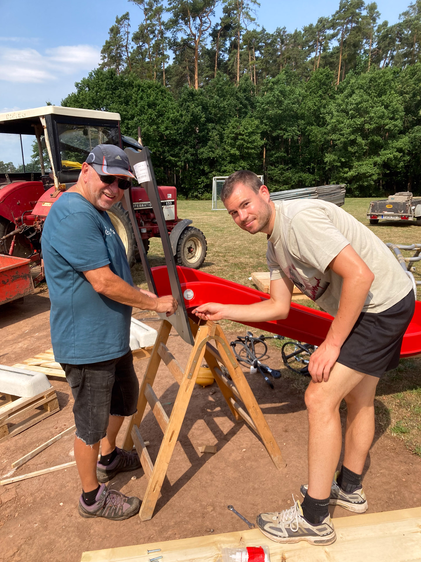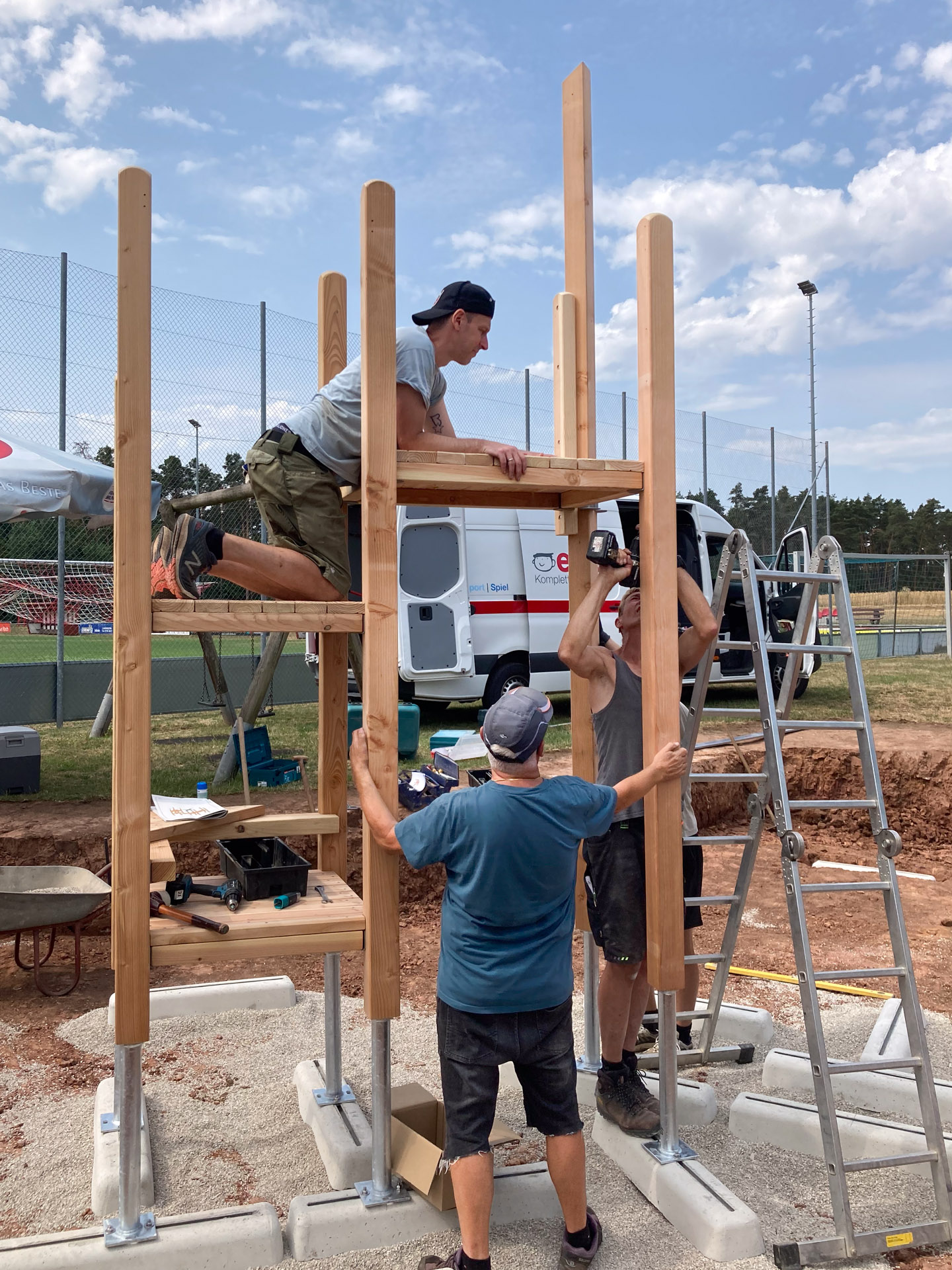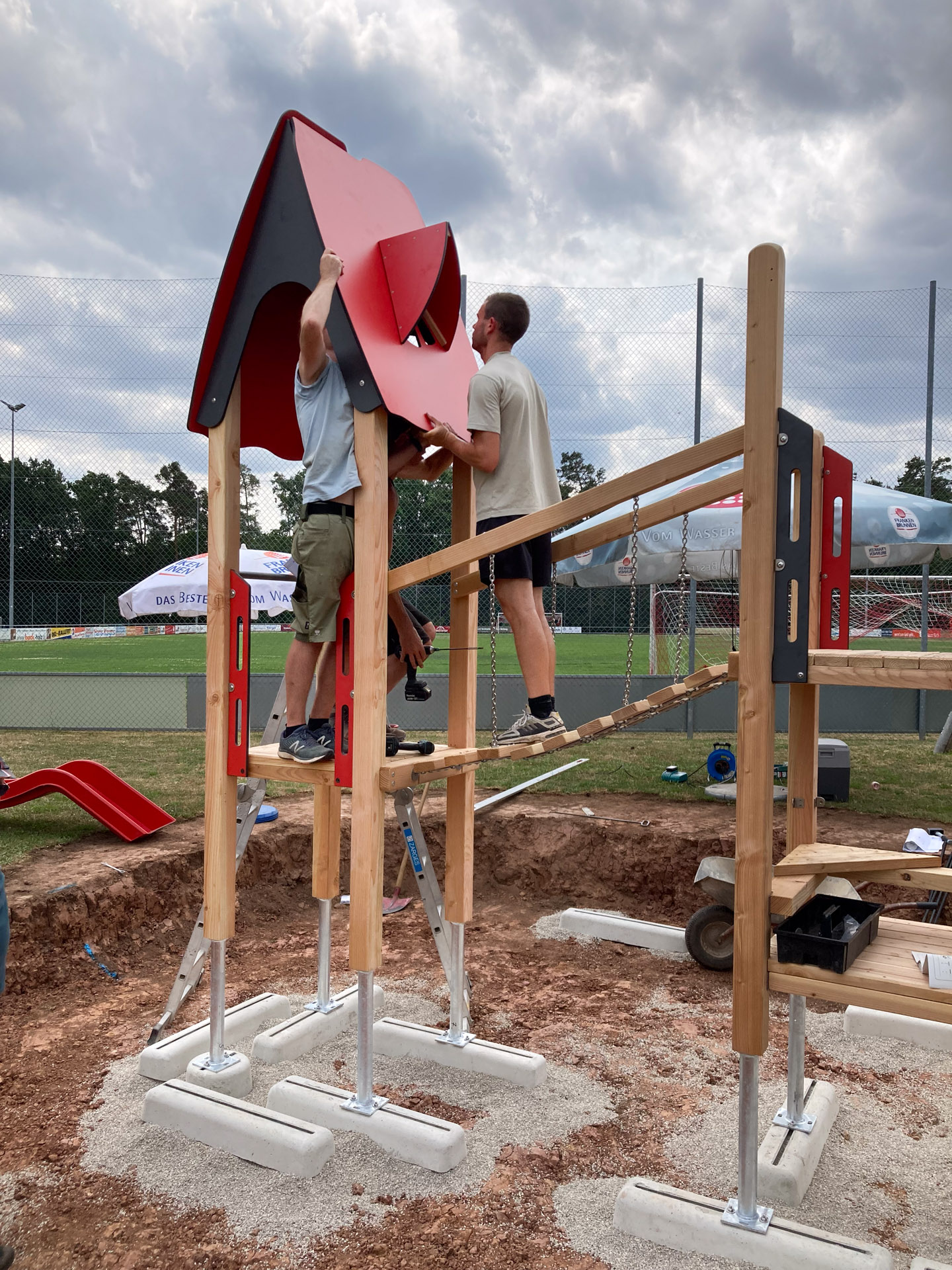 Da stets zahlreiche Familien mit Kindern auf dem Sportplatz unterwegs sind, ist ein spielerisches Angebot natürlich sehr wertvoll und findet schnell viele begeisterte Kinderaugen. Im Spätsommer 2023 war es nun endlich soweit. An nur 2 Tagen wurde aus einer Wiese ein komplett neues Spielgerät mit Kiesbett und die fleißigen Helfer konnten sich über das gelungene Werk freuen.