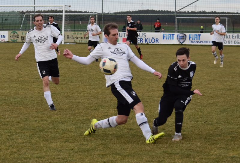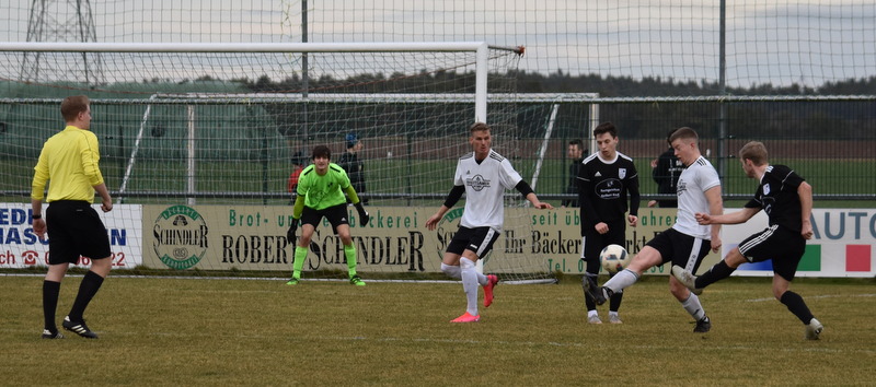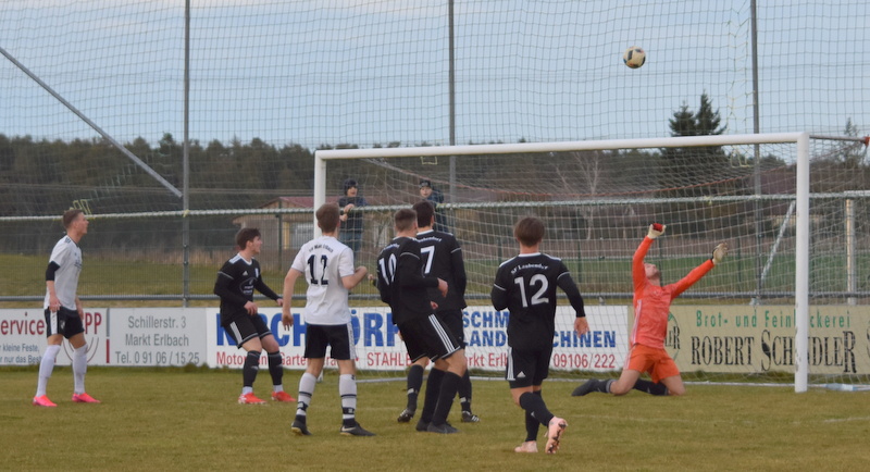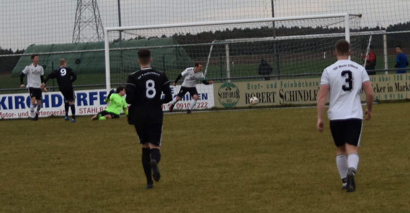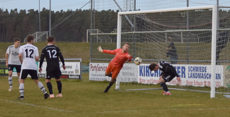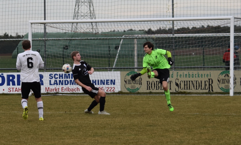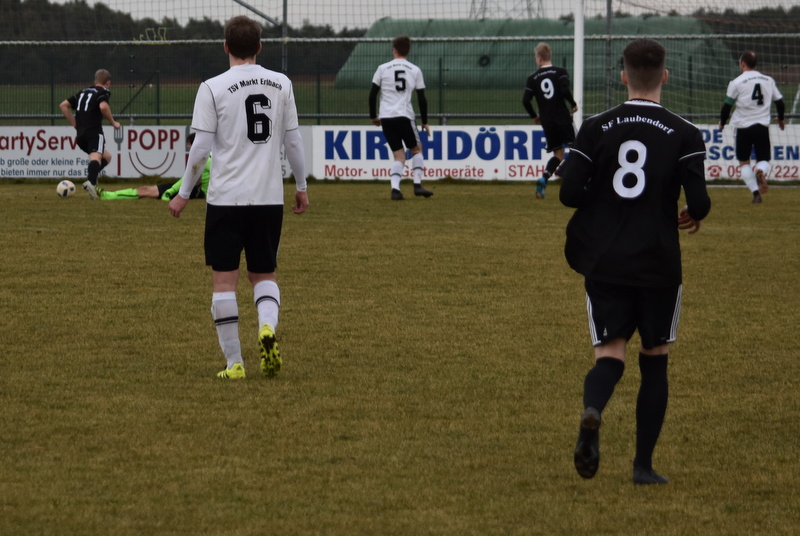 Beide Mannschaften zeigten von Anfang an ein enges umkämpftes Spiel. Zwar passierten auf beiden Seiten immer wieder Fehler im Spielaufbau, dennoch gab es einige Torraumszenen. Allerdings mussten die Zuschauer lange auf den ersten Treffer warten. In der 45. Minute – einige hatten sich bereits mit dem Remis zur Pause abgefunden – konnte sich Pfänder nach einem langen Ball von seinem Gegenspieler den Ball erkämpfen und bediente Horneber. Dieser umkurvte den Schlussmann und schob ein. Jedoch konnte ein Markt Erlbacher Verteidiger auf der Linie klären. Beim Nachsetzten des mitgeeilten Pfänders war er aber dann machtlos und es ging mit 0:1 in die Pause. In der 2. Hälfte erhöhten die Hausherren den Druck. Die Gäste aus Laubendorf konnten sich nicht mehr richtig befreien und das ein oder andere Mal musste Laubendorfs Schlussmann Becker den Gegentreffer verhindern. Bis zur 85. Minute gelang dies auch. Dann aber nach einem Markt Erlbacher Eckball brachte die Abwehr des SFL den Ball nicht aus der Gefahrenzone und nach mehreren Abschlussversuchen war es schließlich Popp der den Ball zum verdienten Ausgleich über die Linie drückte und damit gleichzeitig den Endstand besorgte.