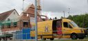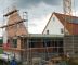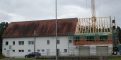 Am gestrigen Mittwoch herrschte schon am Morgen geschäftiges Treiben. Das lag an den Mannen der Schreinerei Keppner, die es sich an diesem Tag zur Aufgabe gemacht hatten, den Dachstuhl für den Anbau am Sportheim zu errichten. Dazu wurden vorgefertigte Balken zusammengeschraubt und per Kran auf die Decke gehievt. Dort nahmen zwei Arbeiter die Balkenkonstruktion in Empfang und bugsierten sie an die vorgesehenen Plätze. Dann wurden die Balken miteinander verbunden. Daraus entstand bis zum Nachmittag das Gerippe des Dachstuhls, das dann in weiteren Schritten soweit bearbeitet wird, dass er die Dachziegel aufnehmen kann. Dies wird in den nächsten Tagen in Angriff genommen.