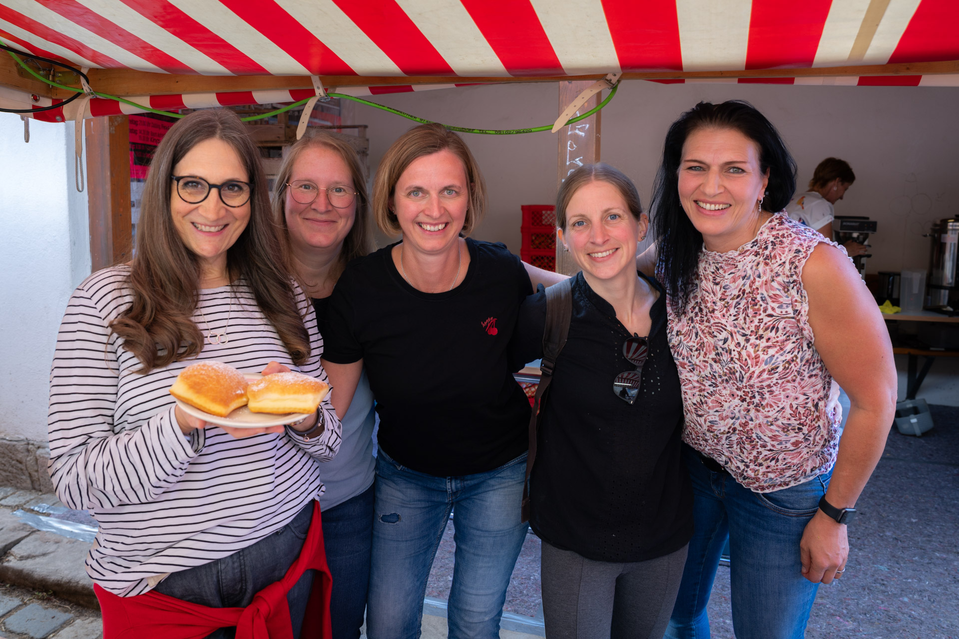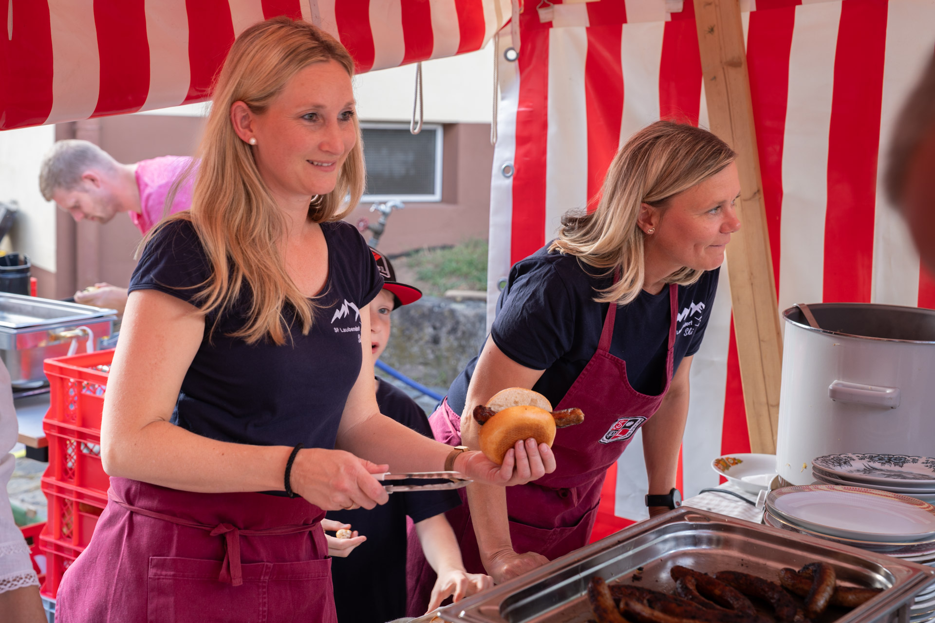 Auch kulinarisch war wieder einiges geboten: Die Kuchentheke war ein wahrer Anziehungspunkt, die fränkischen Bratwürste mit selbstgemachtem Sauerkraut fanden reißenden Absatz, und die beliebten Rahmflecken der Familie Osswald durften selbstverständlich nicht fehlen. Dazu gab es Bier, Wein, Federweißer und Aperitifs, die bei spätsommerlichen Temperaturen besonders gut ankamen.