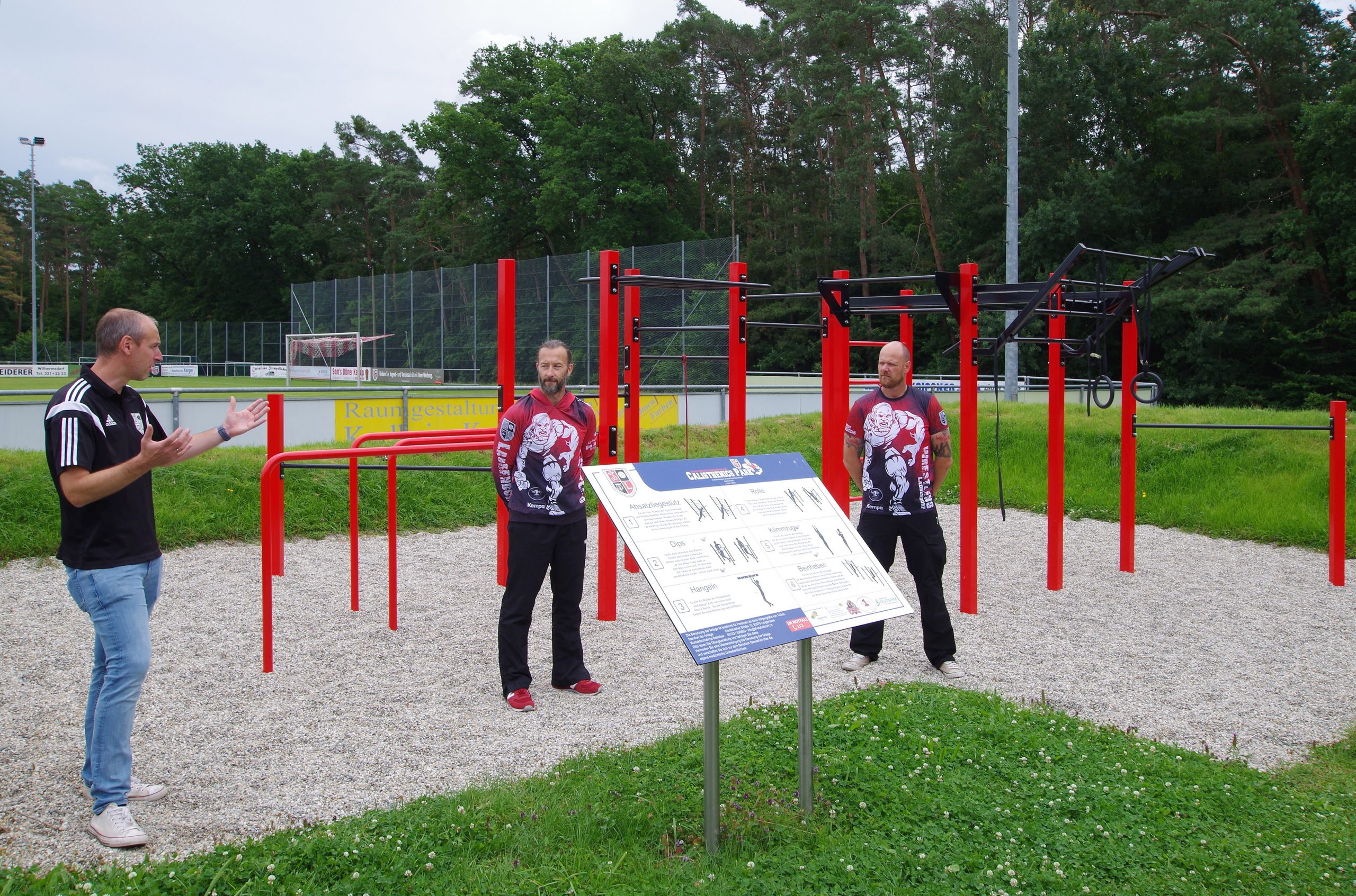 Zur Eröffnung versuchten sich die Stadträte Birgit Osswald, Manfred Durlak, Wolfgang Erhart, Anni Schlager und Christian Sieber an den Geräten. Einige Übungen konnten die Experten der Sportfreunde Laubendorf bereits vorführen. An dieser Stelle ein großes Dankeschön für die Unterstützung an Svenja Schäfer von der Zenngrund Allianz, sowie an den bereits verstorbenen Gönner Martin Ermer dessen Spende ebenfalls in der Anlage eine gute Verwendung finden konnte. Die Umsetzung organisierte die Ringerabteilung der SF Laubendorf in Eigenregie von der Idee bis zur finalen Umsetzung. Die Anlage ist für alle Interessierten frei zugänglich. Schaut gerne mal vorbei auf dem Sportgelände in der Siedelbacherstraße. Wir wünschen viel Spass!