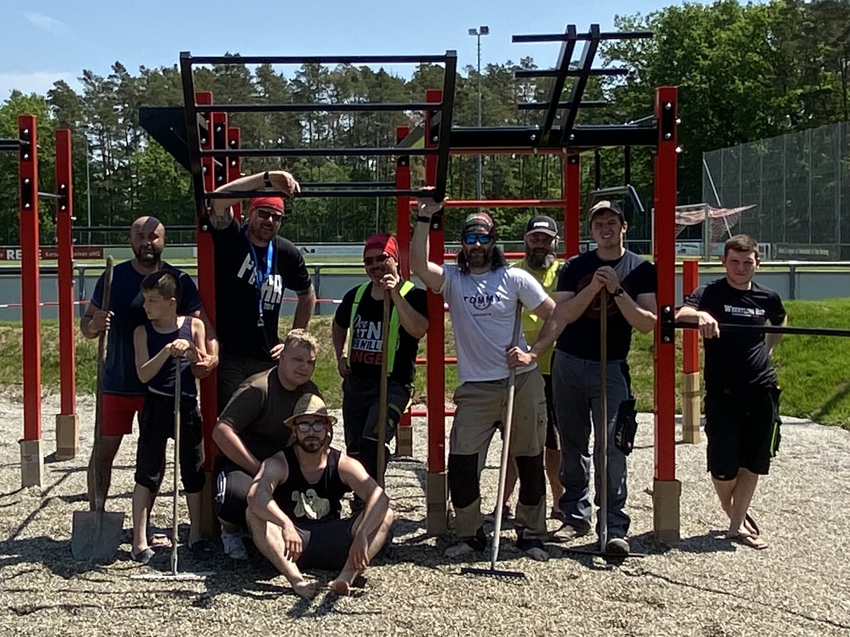 Einiges an Muskelkraft musste die Ringerabteilung des SFL schon in der Bauphase einsetzen. 84 Tonnen Kies wurden verräumt und auch die kurzfristig benötigte Drainage gegen Stauwasser in der Grube wurde fleißig per Hand ausgehoben. Calisthenics ist übrigens eine Sportbewegung. Sie steht für turnerische Übungen mit dem eigenen Körpergewicht. Früher hätte man die Anlage schlicht als „Klettergerüst“ bezeichnet. Heutzutage heisst das Calisthenics. Alles neu – alles besser!