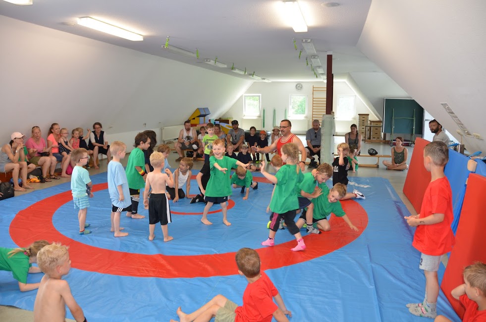 Anna-Luca Dröge leitete den Auftritt der Hip Hop Gruppe, Heidi Kerschbaum den Auftritt der Kinderturngruppe und Heiko Wolf stellte die Ringerkinder vor mit anschließender Kostprobe auf der Ringermatte. Natürlich durften die kleinen Zuschauer alle 3 Sportarten auch einmal selbst ausprobieren. Zwischendrin konnten sich die Sportler und ihre Familien mit Kaffee, Kuchen, Obst und Getränken stärken. Am Mittag gab es zudem für jeden ein Nudelgericht, das Heike Sommer und ihr Küchenteam mit einigen eifrigen Müttern der G-Jugend im Vereinsheim aufgebaut hatten.