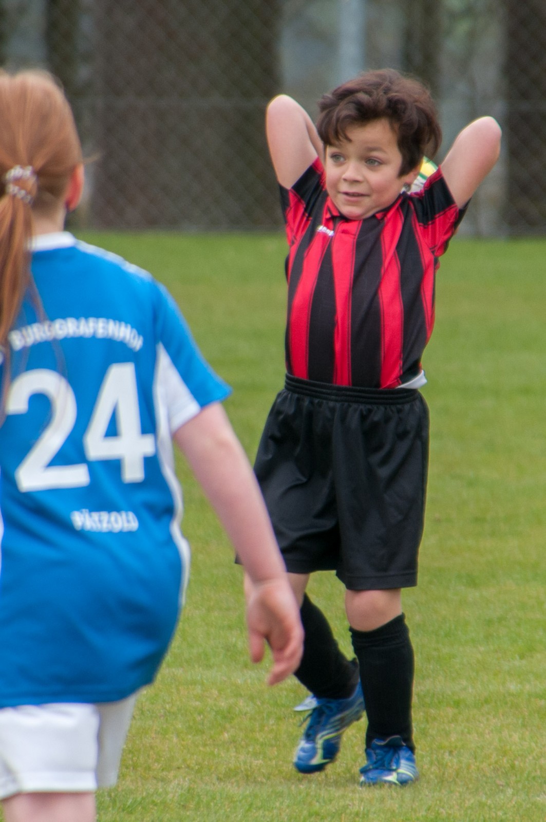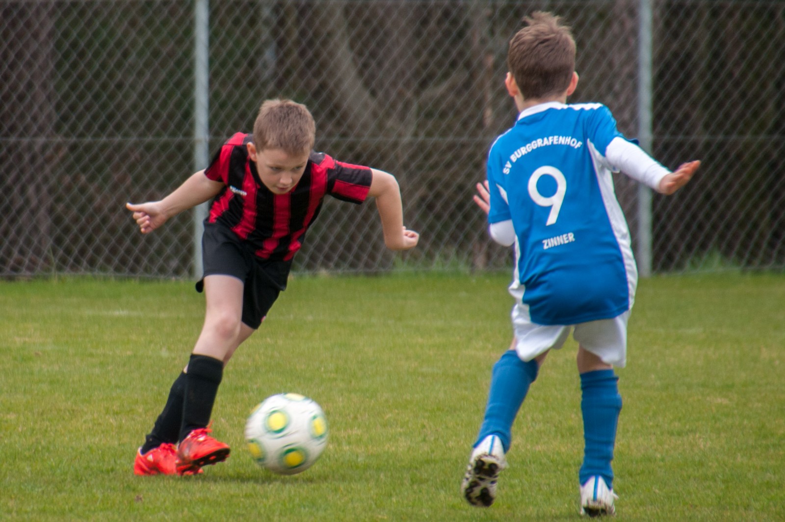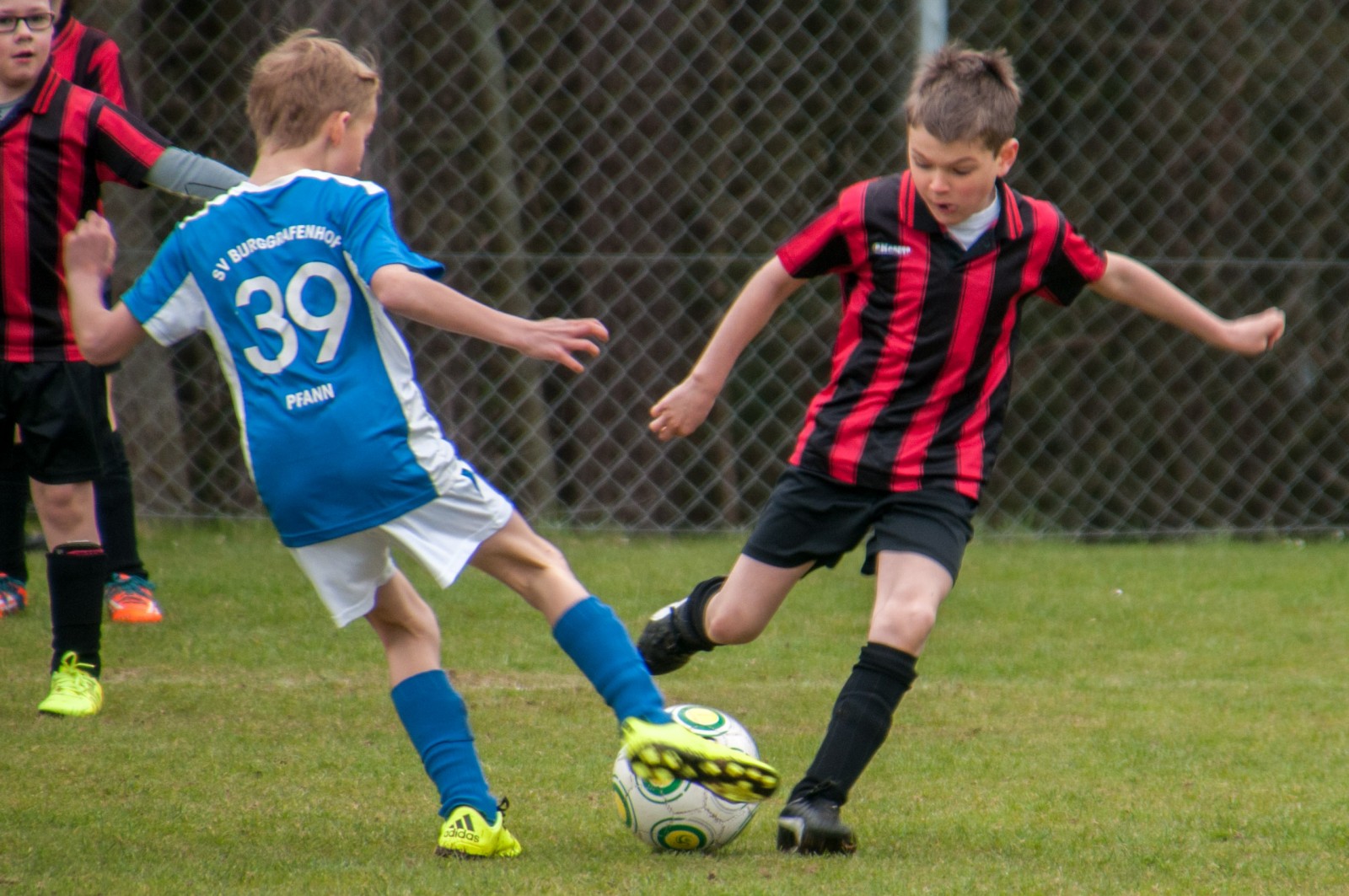 Und….. Wir spielten unser erstes Heimspiel gegen die Freunde aus Burggrafenhof. Das Training unter der Woche war durchwachsen und so begann auch das Spiel. Durch einen Weitschuss gerieten wir Mitte der ersten Halbzeit in Rückstand. Luca hatte keine Chance. Er stand im Kasten, da Tim eine kleine OP an der Hand hatte. Die Höfer spielten englisch. Hoch und weit. So kam unser sonst so effektives Pressing nicht zur Wirkung. Die Bälle segelten oft über unsere Köpfe hinweg. Doch wir ließen uns dadurch nicht beirren. Ballsicher spielte unsere Defensivreihe um Nils, Jannick und Lucas uns Mal um Mal nach vorne. Davide kam nach guten Pässen zweimal den berühmten Schritt zu spät. Aber nach einer Ecke von Jannick war es dann soweit. Den Abpraller verarbeitete Jakob gedankenschnell. Legte den Ball durch zwei Verteidiger durch und schoss ins lange Eck zum verdienten Ausgleich. Kurz vor der Pause drehten wir dann noch das Spiel. Jakob trieb den Ball dynamisch durchs Mittelfeld und spielte den Pass perfekt in den Lauf von Tim der sich von seinem Gegenspieler wunderbar löste und gegen den super haltenden Torwart ins kurze Eck einnetzte.