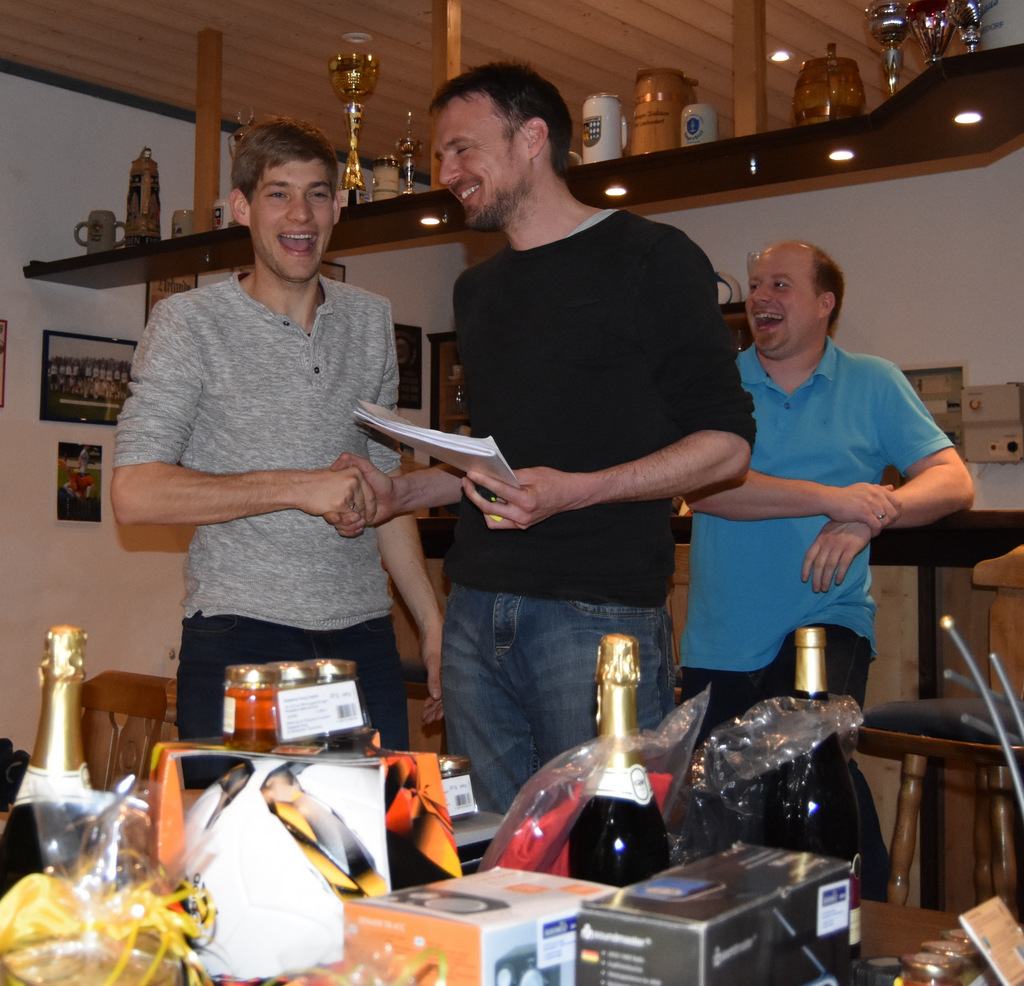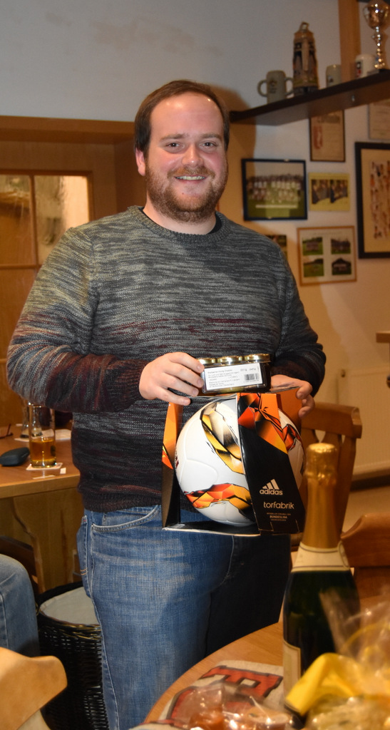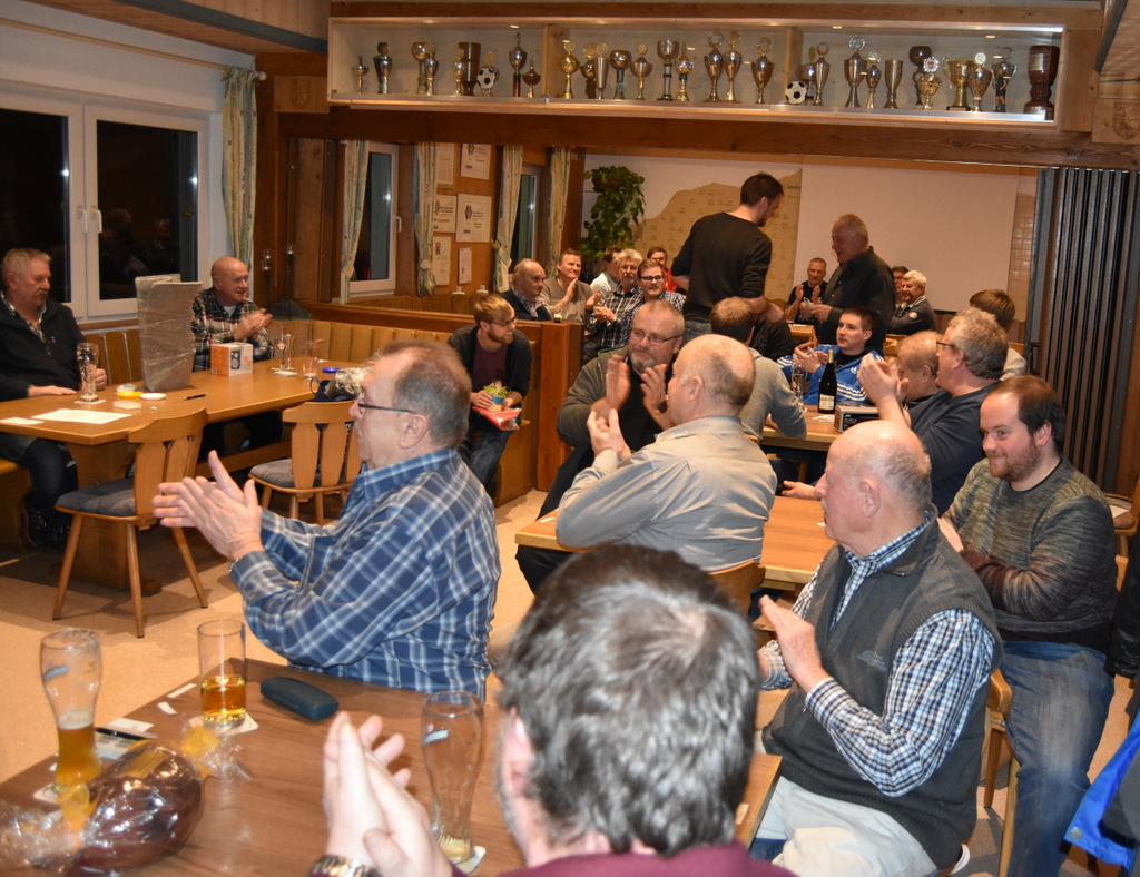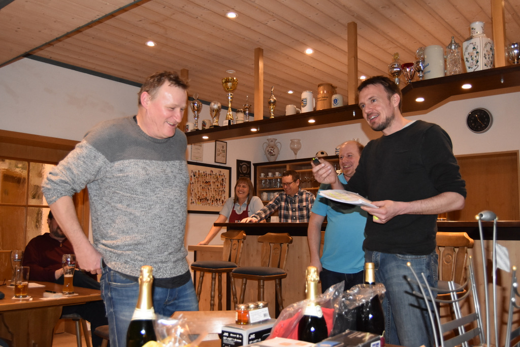 Markus ehrte alle 28 Spieler mit einem Preis, was nicht selbstverständlich ist. Er bedankte sich deshalb auch bei den Sponsoren, die mit Maler Bernreuther, Fernseh Jakob und Kachelofen Osswald aus der SFL-Familie kommen, ganz herzlich. Ebenso bei seinen Helfern und dem Serviceteam des Sportheims. Er wünschte gegen Mitternacht einen guten Nachhauseweg und ein Wiedersehen beim Schafkopfrennen 2019.