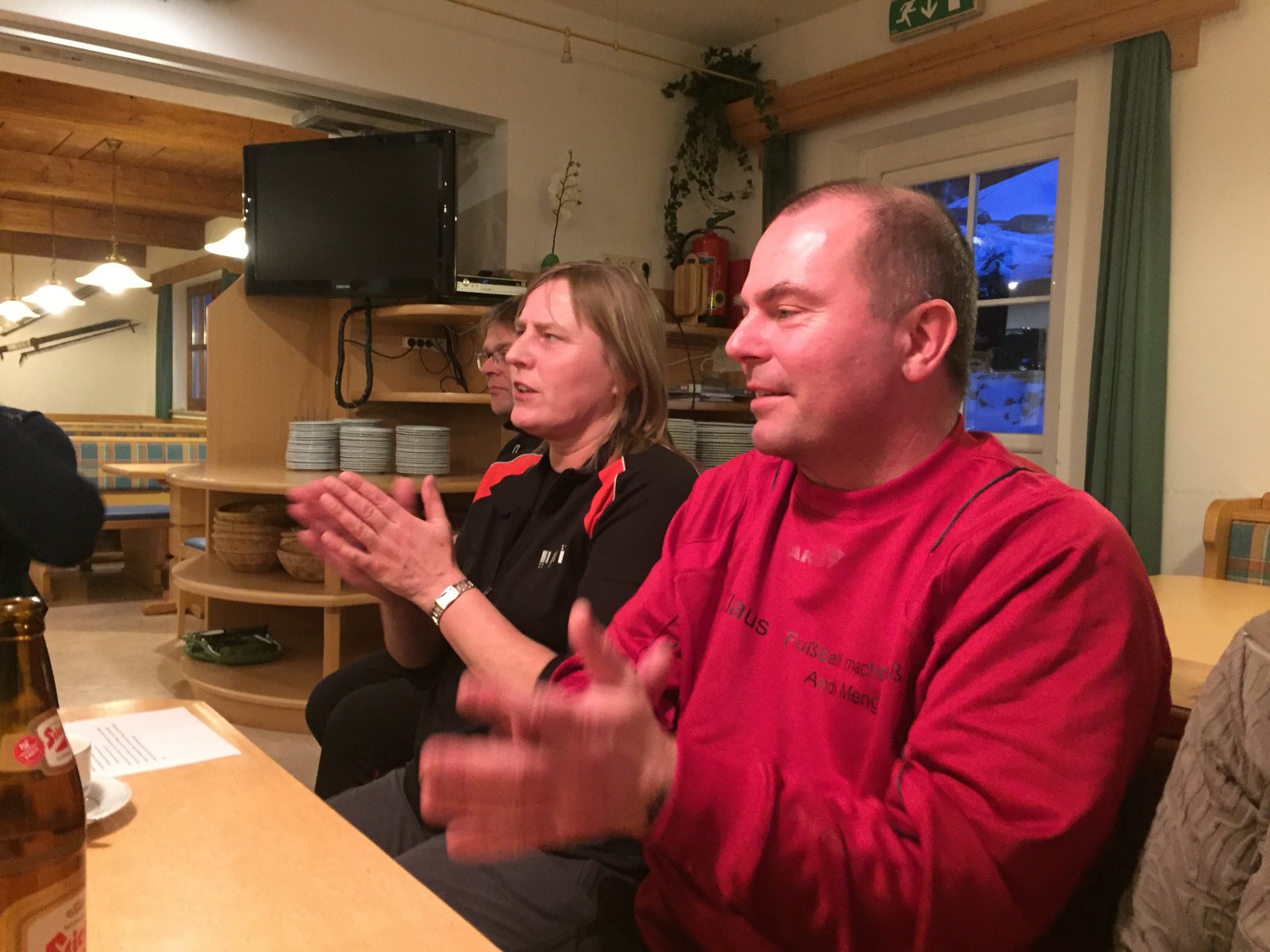 Nach einem Zwischenstopp sind wir gegen 20.30 Uhr im Gästehaus Gruber angekommen. Die Zimmereinteilung wurde bereits im Bus verkündet, damit war jedem klar, wo später eventuell noch die ein oder andere Party stattfand. Zügig wurden die Zimmer in Beschlag genommen, denn es wartete noch ein Abendessen auf uns. Nach Nudelsuppe, Schnitzel und Cordon Bleu saßen wir im Aufenthaltsraum noch zusammen und ließen den Abend ausklingen.