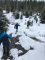 Am nächsten Tag war es dann leider wettertechnisch noch etwas komplizierter, denn es hatte in der Nacht geregnet und so haben wir uns in zwei Gruppen aufgeteilt. Die eine Gruppe zog es in den Graineter Wald um die Haidel-Loipe zu begehen und die andere Gruppe ging mit Wanderführer Hiltzi auf den Lusen. Der Chronist war beim Loipen-Team dabei, somit bekommt Ihr mehr Informationen über diesen Teil des Tages (die Bilder später sind aber von allen Aktivitäten). Die Grainet-Gruppe war, wie Fräulein Smilla auf der Suche nach Schnee. Das war nicht ganz so einfach, aber wir haben es tatsächlich geschafft und nach ca. 100 Metern waren wir dann auch auf unseren Brettern und konnten laufen. Es war aber extrem eisig und so hatten wir nach der ersten Abfahrt schon gleich zwei Stürze. Weiter ging es mit sehr verwirrender Beschilderung immer rund um den Heidel (1.165,6m) und manchmal ging es ganz gut aber leider sehr oft waren wir zu Fuß unterwegs, da es einfach nicht möglich war mit den Skiern zu laufen. Die Gruppe wurde erfinderisch und so wurden sogar Skitrage-Halterungen kreiert und so ausgerüstet zogen wir dann weiter. Nach einer längerem Fußmarsch waren wir dann wieder auf den Ski unterwegs, mussten dann aber leider wieder einen sehr schmerhaften Sturz hinnehmen.  Nach einer sehr langgezogenen Kurve ging es dann den „Postberg“ hinauf zum Haidel. Für die meisten ging es dann die restlichen 500 Meter noch nach oben zum Berggipfel und den Holzturm um die Aussicht zu genießen. Im Anschluss ging es dann zurück zum Auto und dann auf die Suche nach einer leckeren Stärkung.