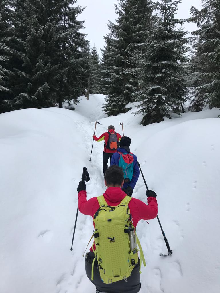 Am Sonntag war dann klar, das mit dem Langlaufen, wird wohl noch schwieriger wie an den beiden Vortagen werden. Wir haben uns dann aber doch dazu entschieden, die Bayerwald-Loipe Richtung Bucina zu laufen (mit oder ohne Ski). Somit hatten wir wieder zwei Gruppen und überraschenderweise auch eine geschlossene Schneedecke, da der Bogen doch mit ein paar Zentimetern überzuckert war.