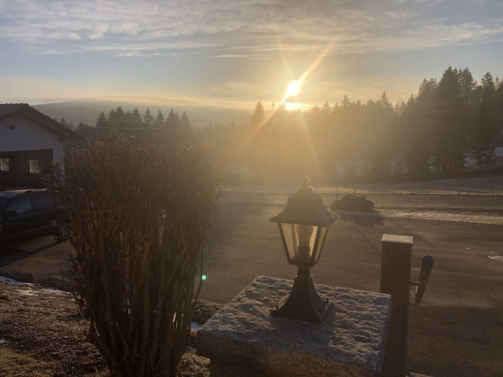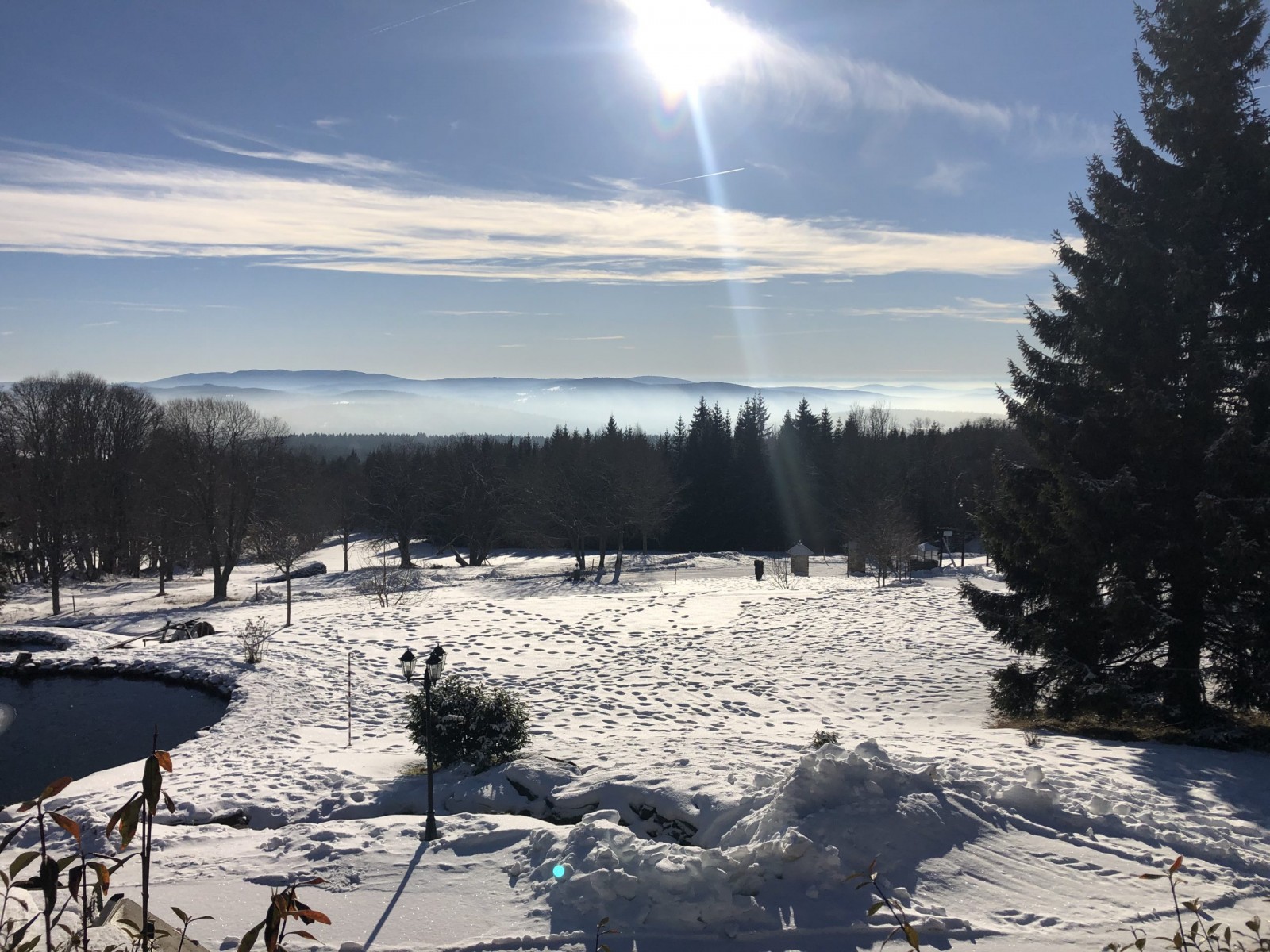 Bis kurz vor Freyung war leider immer noch kein Schnee in Sicht. Beim Leih der Langlauf-Ausrüstung konnte uns der Verkäufer im Sportgeschäft aber zumindest etwas Hoffnung machen. Es gibt Schnee..