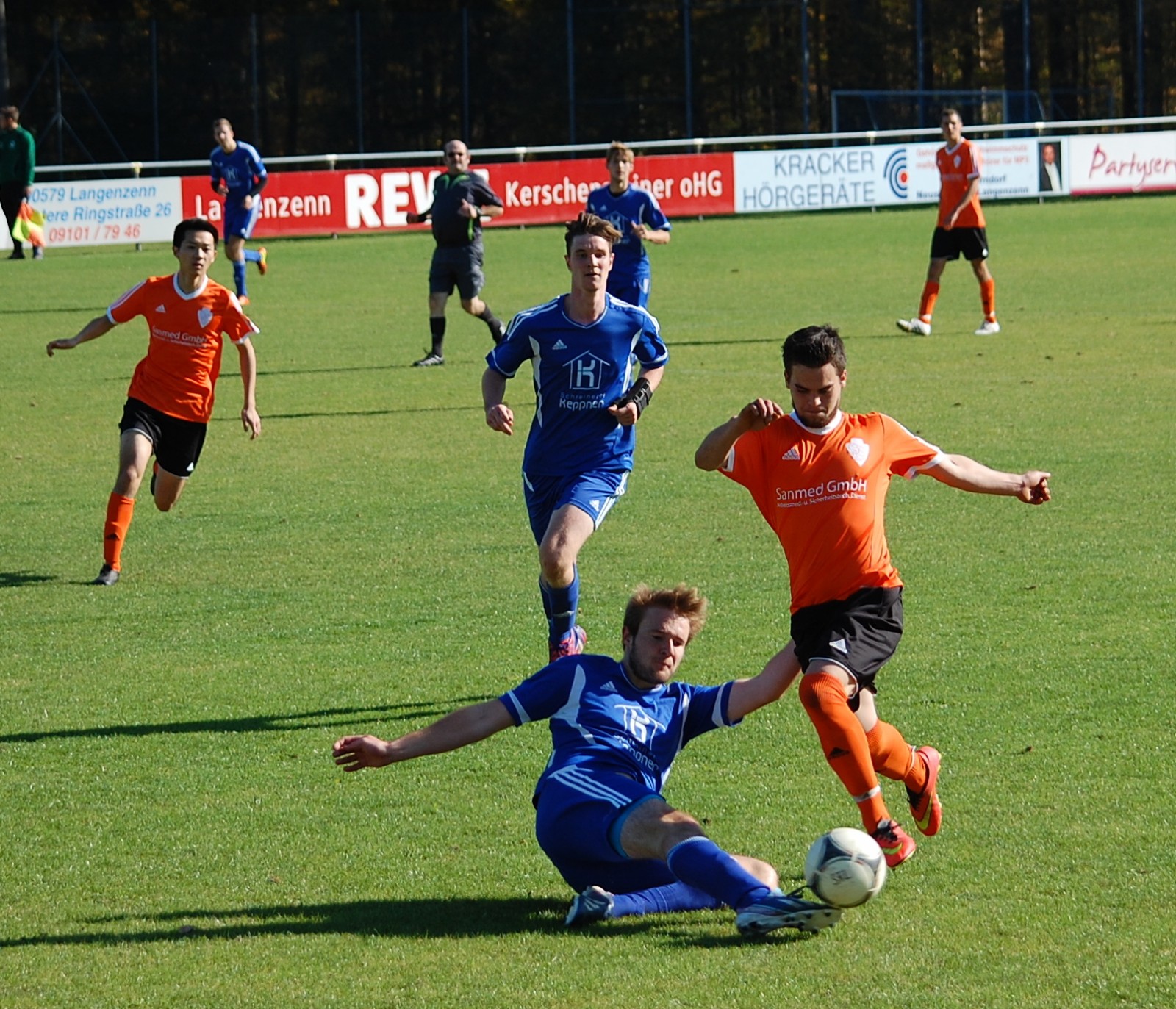 Hannes Osswald klärt gegen einen Obermichelbacher Stürmer, kann aber die erneute Niederlage auch nicht verhindern