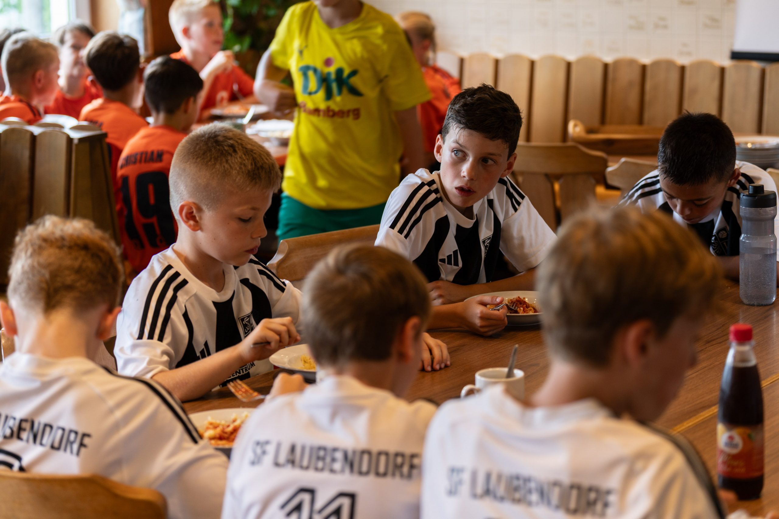 Das Wetter hielt, für Speisen und Getränke war ausreichend gesorgt und auf dem Platz boten die Kids des Jahrgangs 2015 meisterliches. Zu mittag gab es Nudeln für alle Spieler. Gut gestärkt ging es dann in die Spiele des Nachmittags.