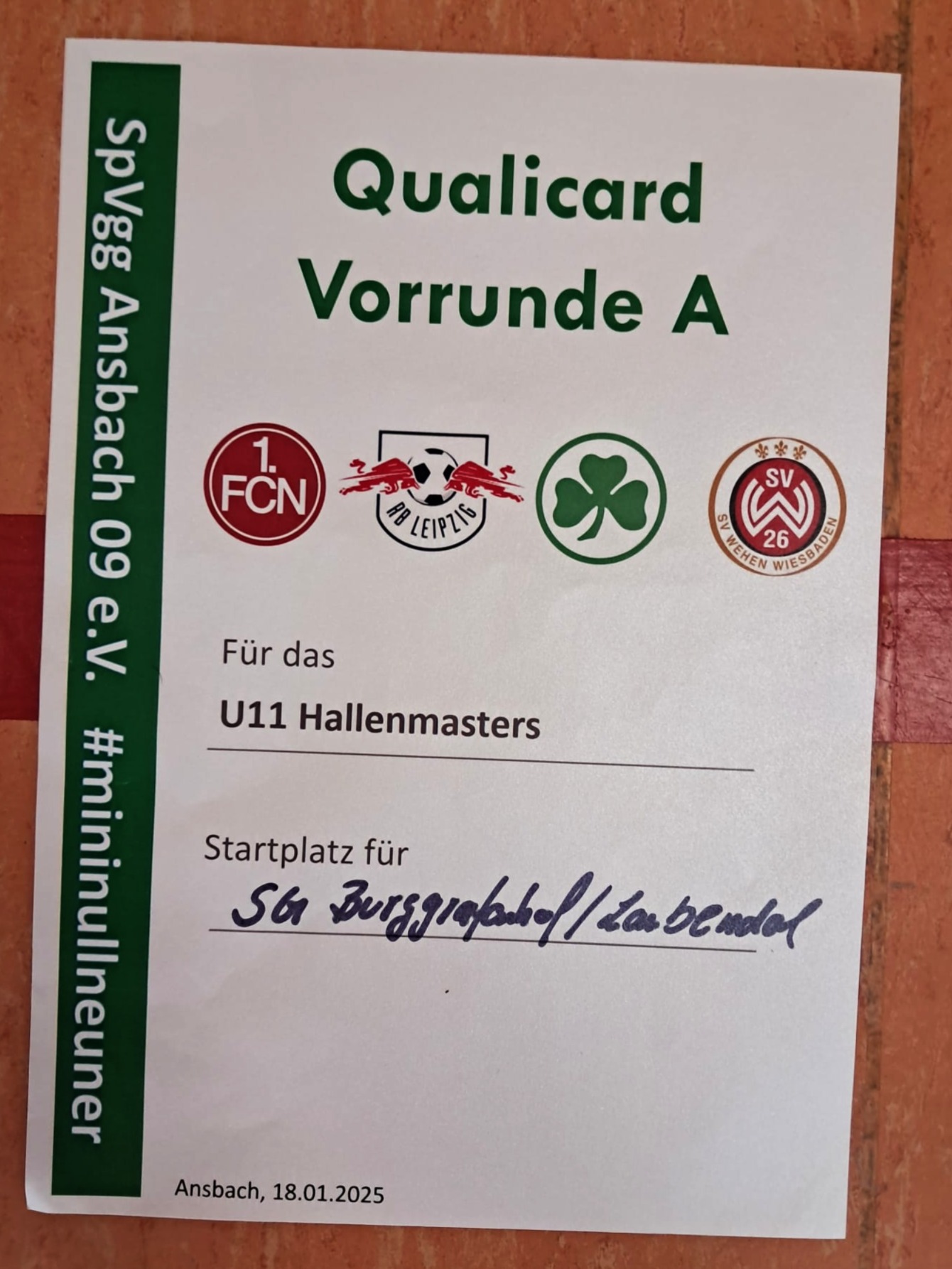 An diesem Wochenende waren wir nach Ansbach eingeladen, um gegen 9 weitere Mannschaften aus dem erweiterten Einzugsgebiet der SpVgg Ansbach (u.a. auch zwei Teams aus aus Baden-Württemberg) zwei Teilnehmer für das „Große Turnier“ mit den Jugendvertretungen verschiedener Bundesligisten auszuspielen.