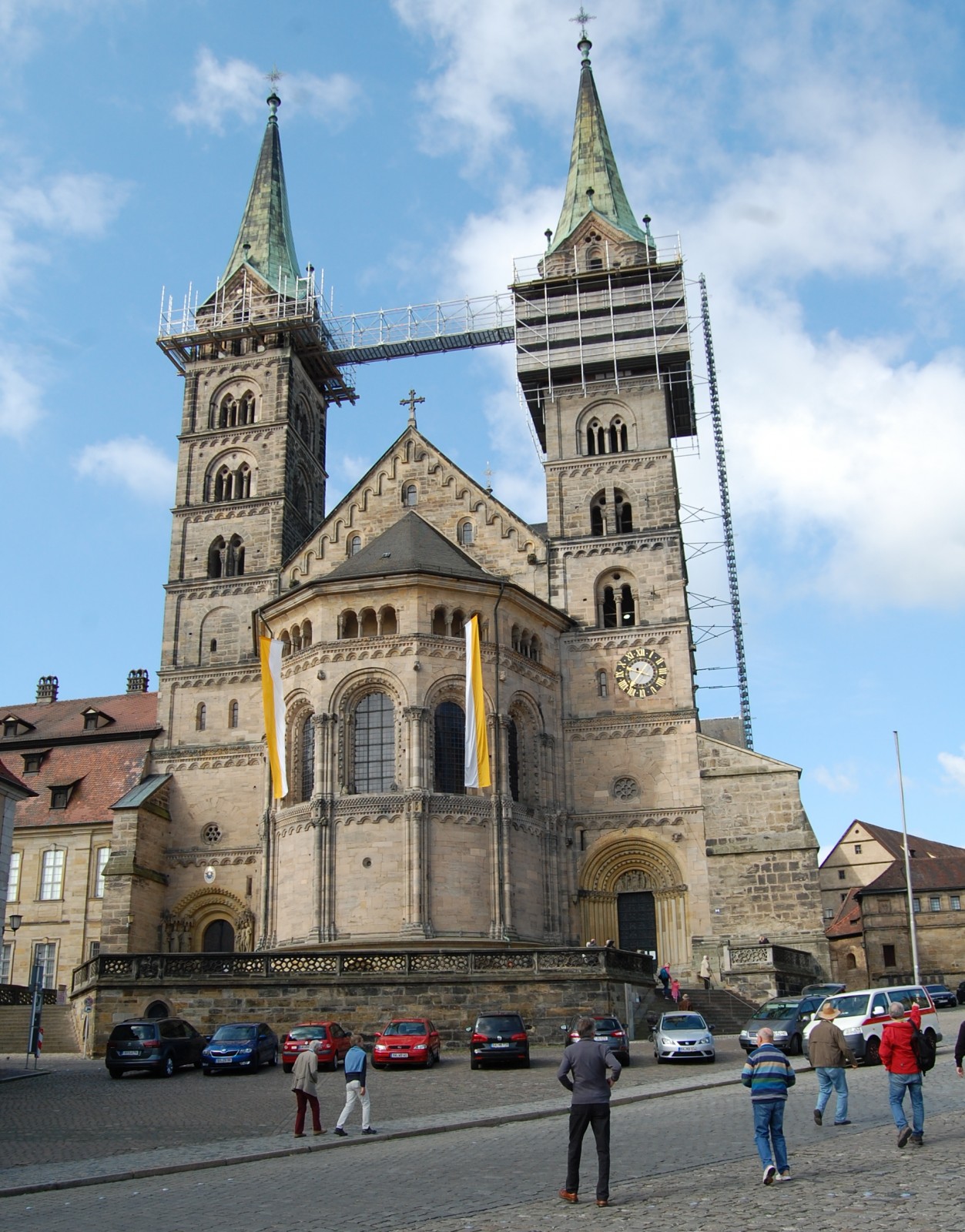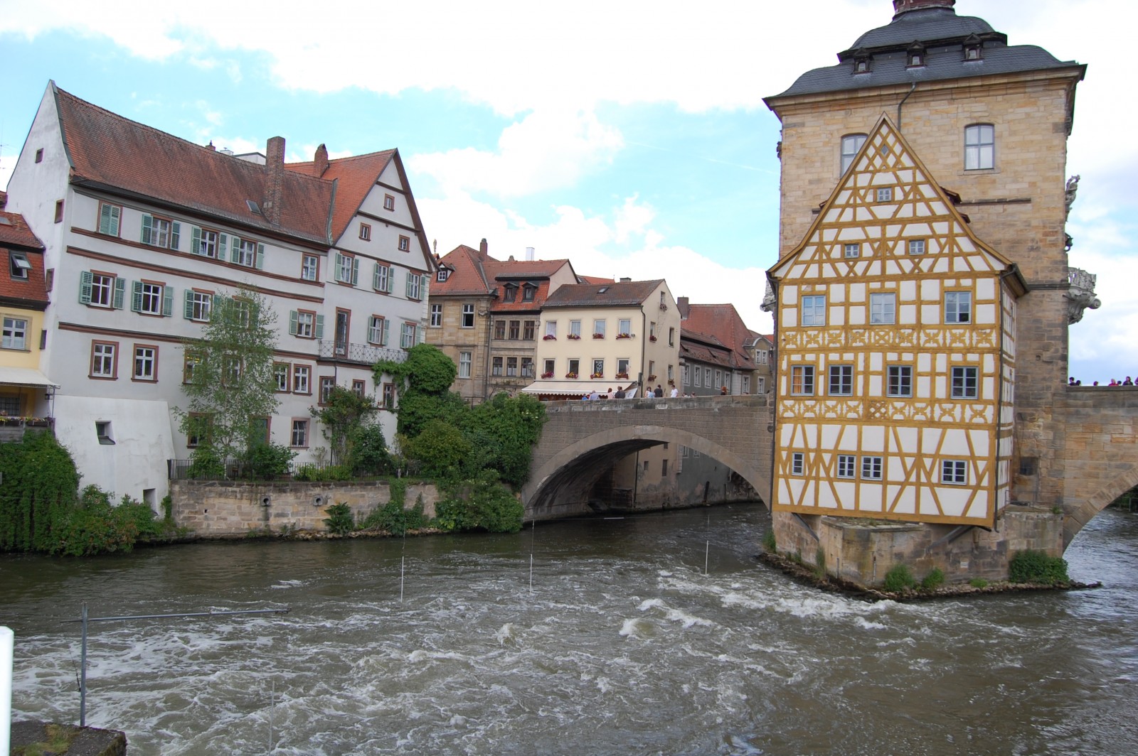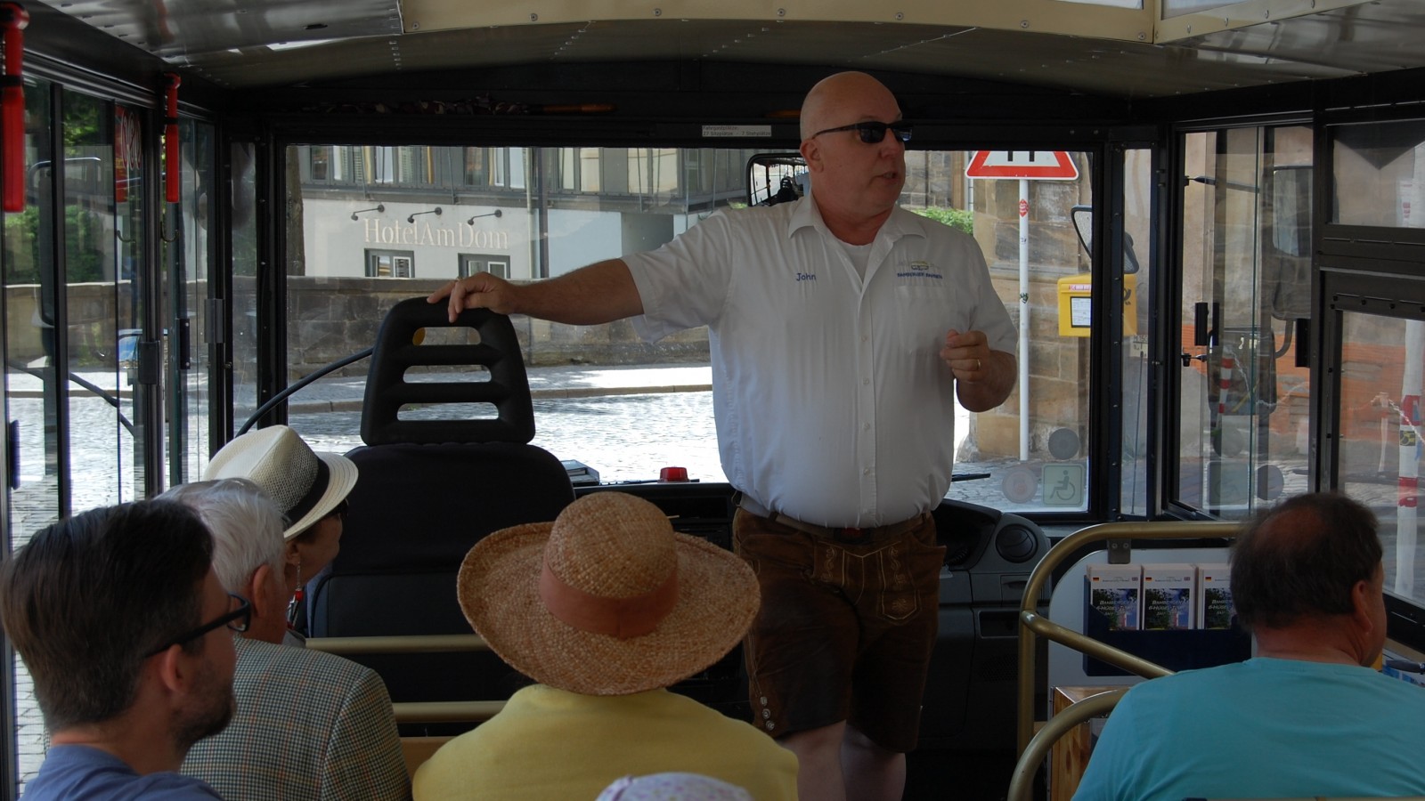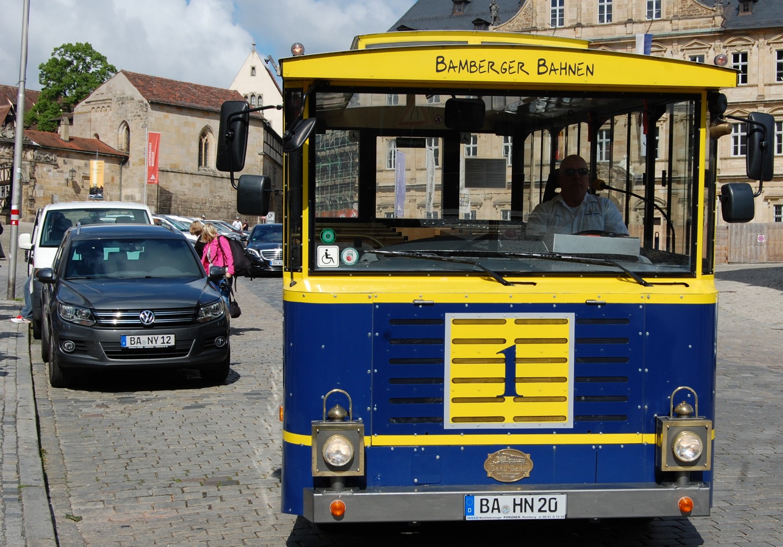 Nach etwa 80 Minuten kamen wir in Bamberg an und wurden mit einem Großraumtaxi zum Domplatz kutschiert. Von dort aus fahren regelmäßig Busse, die in ca. 60 Minuten viele Sehenswürdigkeiten von Bamberg ansteuern. Schon der Fahrer war, im wahrsten Sinne des Wortes, den Eintritt wert, handelte es sich doch um einen ehemaligen GI, der nach der Army in Bamberg hängen geblieben war. Er hatte dort seine große Liebe gefunden – das fränkische Bier- und ist seitdem im englisch-fränkischem Slang als Busfahrer unterwegs. Von ihm erfuhren wir alles Wissenswerte und manch nette Anekdote dazu. Dass Bamberg auch eine Burg zu bieten hat, bemerkten wir spätestens als wir dort eine Pause einlegten. Vom Turm der gut erhaltenen Anlage hat man eine tolle Rundumsicht und auch weit in die fränkische Schweiz hinein.
