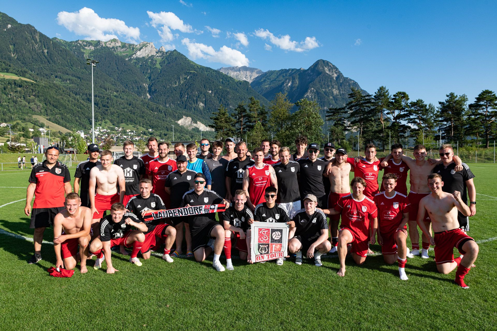 Genau 32 Spieler, darunter auch zwei Spieler aus der aktuellen A-Jugend SG stiegen am Donnerstagmorgen um 8:00 Uhr in den Bus in Richtung Liechtenstein. Aufgrund der mehr als positiven Erfahrungen aus dem letzten Jahr entschied man sich, nach 2022 auch in dieser Sommer-Vorbereitung wieder die Reise in das Fürstentum anzutreten. Insgesamt drei Trainingseinheiten standen dort auf dem Programm. Am Freitag fuhren wir in das Österreichische Wandergebiet Laterns um Höhenluft zu schnuppern. Samstagabend stand dann das Highlight des Trainingslagers an. Wir traten in einem Freundschaftsspiel gegen den lokalen FC Triesen an. Am Ende des unterhaltsamen Spiels, bei hohen Temperaturen, setzten wir uns gegen einen Gegner auf Augenhöhe letztlich mit 5:3 durch. Die Torschützen auf SFL-Seite waren D. Werner, Hertlein, Bernreuther, Waßner und Korn.