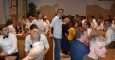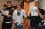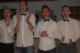 Eine besondere Herausforderung ist alle Jahre wieder das Quiz vom Markus Kraus. Auch in diesem Jahr hieß es an manchen Tischen „wer weiß denn sowas“? Z.B., dass die Skihütte auf 353 m liegt! Aufs „Treppchen für Schlaue“ kam Sebastian Zeilinger als Dritter, Chefcoach Jäger mit Partnerin als Zweite und Andi Busswell als „Oberschlaumeier“. Höhepunkt des Abends war dann der Auftritt der sich von Jahr zu Jahr steigernder Schauspielgruppe. Sie lüfteten die Geheimnisse um das erfolgreiche Coaching der Vorrunde, wozu auch der wöchentliche Trainingsbetrieb gehört. Sehr schön dargestellt dann auch die Reaktion der Stammzuschauer, denen natürlich gewisse Schwächephasen, der ein oder anderen Spieler von außen nicht verborgen bleiben und treffend kommentiert werden. Fazit: muss man gehört haben, lässt sich nicht beschreiben! Etwas „blass“ blieb danach die kurzfristig zusammengestellt boygroup, die erst mit Hilfe des textsicheren Publikums beim Lied „Follow me“ in Schwung kam.