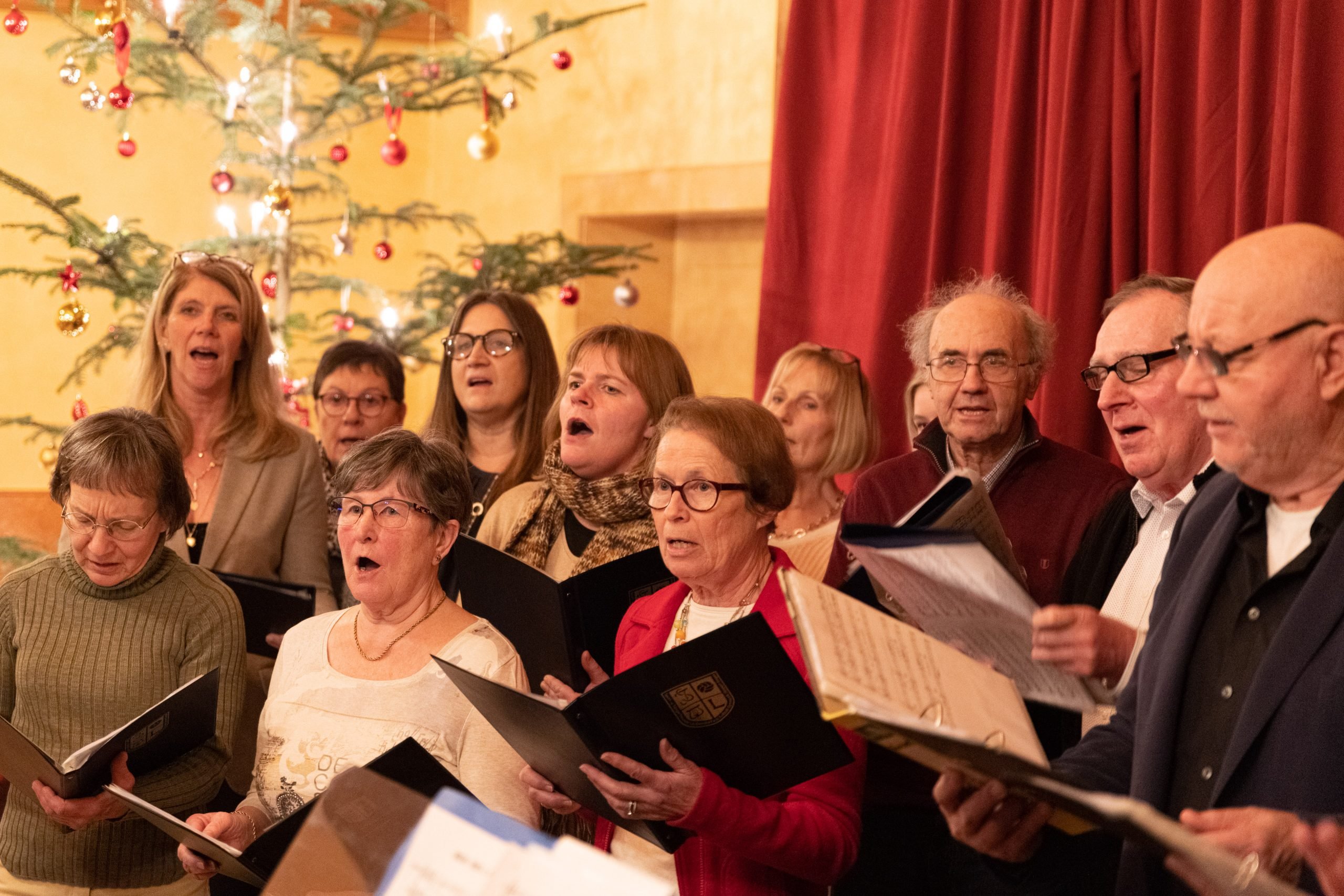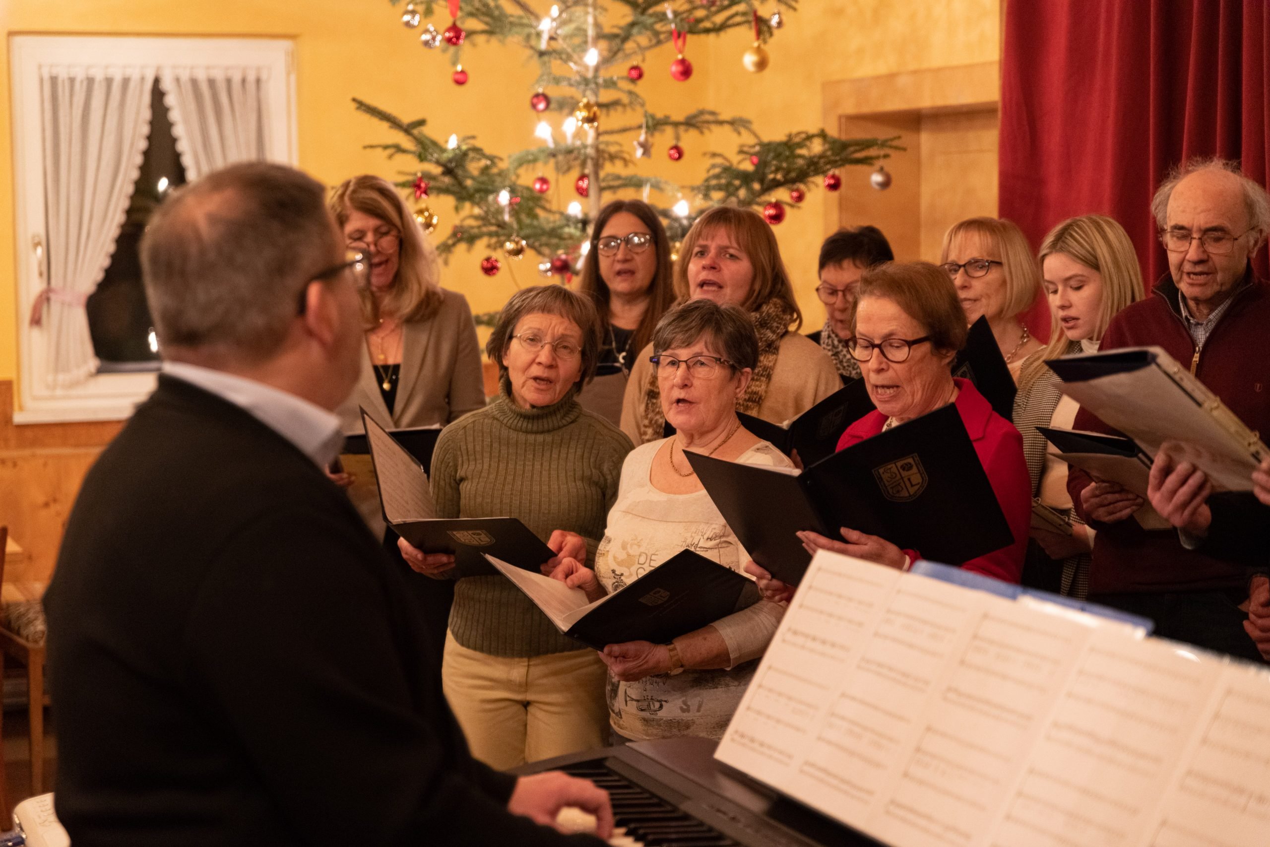 Highlight des Abends war wie immer der Auftritt der Sänger, die gemeinsam mit Chorleiter Kurt Mitländer große Begeisterung im Publikum auslösten. Ein Weihnachtsquiz- Madely sorgte für viel Erheiterung im Publikum und regte zum mitsingen an.